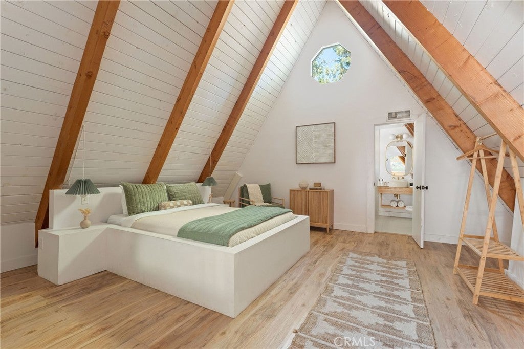 As one of SavvyBear’s premier, top-producing Airbnbs, this cabin boasts impressive numbers that make it a standout investment opportunity. Discover the perfect blend of modern comfort, mountain charm, and proven income potential in this fully turnkey, beautifully remodeled retreat. Tucked away in a quiet area of town, this home offers over 1,500 sq ft of living space designed for both relaxation and entertaining. Step into the open-concept great room, where a dramatic wall of windows floods the space with natural light and frames peaceful treetop views. The upgraded kitchen features stylish finishes, modern appliances, and seamless flow to the living and dining areas—creating an inviting environment for guests and families to gather. With two spacious bedrooms, two remodeled bathrooms, and a versatile loft, the layout comfortably accommodates groups while maintaining privacy for overnight stays. Every detail has been thoughtfully curated to enhance both guest experience and long-term durability. Outside, the landscaped backyard offers multiple areas to unwind, including a private spa, mature trees, and open patio space—an ideal setting after a day at the lake, trails, or slopes. Located just minutes from Oktoberfest, local restaurants, hiking trails, and popular Big Bear attractions, this property provides exceptional convenience while maintaining a peaceful setting. Whether you’re seeking a high-performing income property or a modern mountain getaway for personal use, this turnkey gem is fully prepared to enjoy and continue generating strong rental returns from day one.