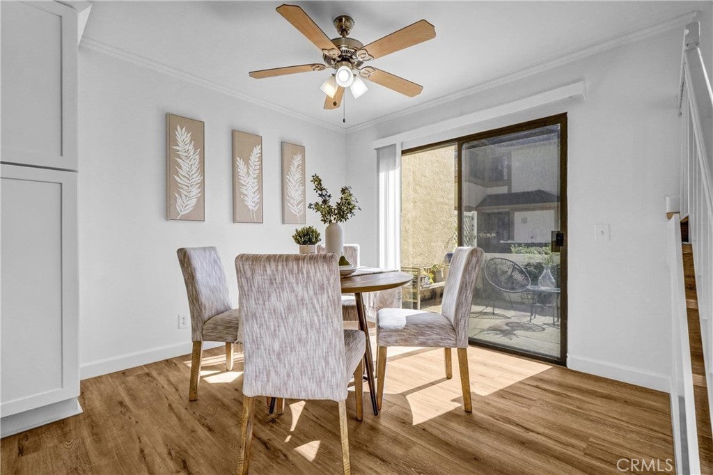 Westside complex—one of the area’s most desirable neighborhoods—this charming home sits across from the beautiful 105-acre Ralph Clark Regional Park, surrounded by lush, mature trees and a peaceful atmosphere. This quiet and well-maintained community offers a relaxing ambiance with beautifully kept grounds cared for by the Association. This desirable end-unit features a comfortable two-story layout with no one above or below. The home offers two generous primary bedrooms, each with its own bathroom. The interior is enhanced by beautiful brand-new vinyl flooring throughout. The stunning remodeled kitchen features black granite countertops, upgraded white shaker cabinets, tray ceiling, and brand-new stainless steel/black appliances, including a 5-burner gas range and dishwasher. A convenient casual dining area, a cozy living room, a downstairs half-bathroom, and handy inside laundry with brand-new washer and dryer (included in the sale) add to the home’s appeal. One of the primary bedrooms offers a vaulted ceiling and mirrored closet doors. One of the bathrooms upstairs has been completely remodeled with a modern walk-in shower. Additional upgrades include fresh interior paint, recessed lighting, ceiling fans, blinds, and crown molding. Numerous windows fill the home with natural light, creating a bright and airy atmosphere. Central air conditioning and heating ensure year-round comfort. Just steps away are two detached carports plus plenty of guest parking. A large sliding door leads to an extra-large, fully fenced front patio—perfect for pets, gardening, barbecues, or enjoying your morning coffee. Enjoy the community amenities, including a pool, spa, and playgrounds, cover water, trash. Conveniently located near shopping, restaurants, grocery markets, parks, and golf courses. The house is empty. The furnitures are for display purposes.