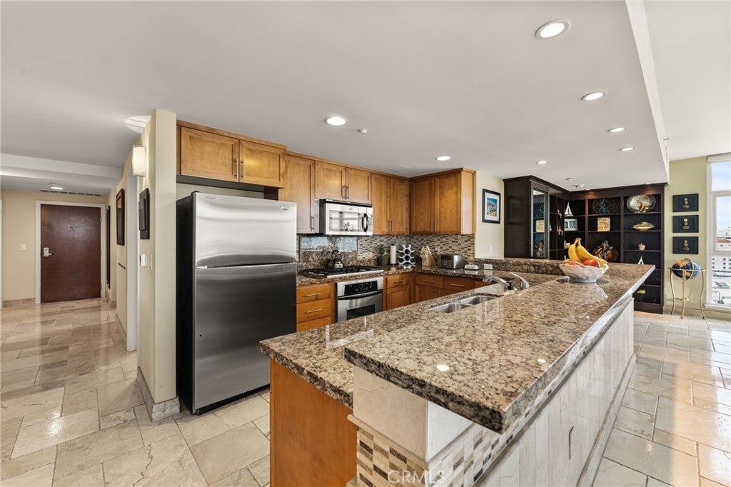 Elevated COASTAL LIVING at the WEST OCEAN TOWERS—one of Long Beach’s premier high-rise communities. This Beautifully UPGRADED LUXURY RESIDENCE is a CORNER UNIT with a BALCONY and breathtaking PANORAMIC VIEWS in every direction. Step inside to an OPEN, LIGHT-FILLED LIVING AREA framed by FLOOR-TO-CEILING WINDOWS that capture sweeping OCEAN, CITY, and COASTLINE VIEWS. The thoughtfully UPGRADED INTERIOR features MARBLE FLOORING, CUSTOM BUILT-INS, DESIGNER LIGHTING, AUTOMATED WINDOW SHADES, and CUSTOM PAINT throughout, creating a polished and inviting ambiance. The GOURMET KITCHEN is completed with STAINLESS APPLIANCES, CUSTOM BACKSPLASHES, EXTENSIVE CABINETRY, and GRANITE COUNTERTOPS—flowing seamlessly into the spacious LIVING ROOM for effortless ENTERTAINING. The Private PRIMARY SUITE provides a relaxing retreat, complete with a gorgeous bathroom and generous closet space. This floor plan also includes two additional bedrooms, a secondary full bathroom, and a guest powder room off the hallway. West Ocean Towers offers unmatched AMENITIES including a 24-HOUR CONCIERGE, POOL & SPA, GYN, WINE STORAGE LOCKER, MOVIE ROOM, BUSINESS CENTER, BBQ AREAS, RECREATION & BILLIARDS ROOMS, OUTDOOR FIREPLACE, and more—true resort-style living. This prime location places you moments from LONG BEACH’S BEST SHOPPING, POPULAR RESTAURANTS, SHORELINE VILLAGE, the MARINA, and the iconic QUEEN MARY—all right outside your doorstep.