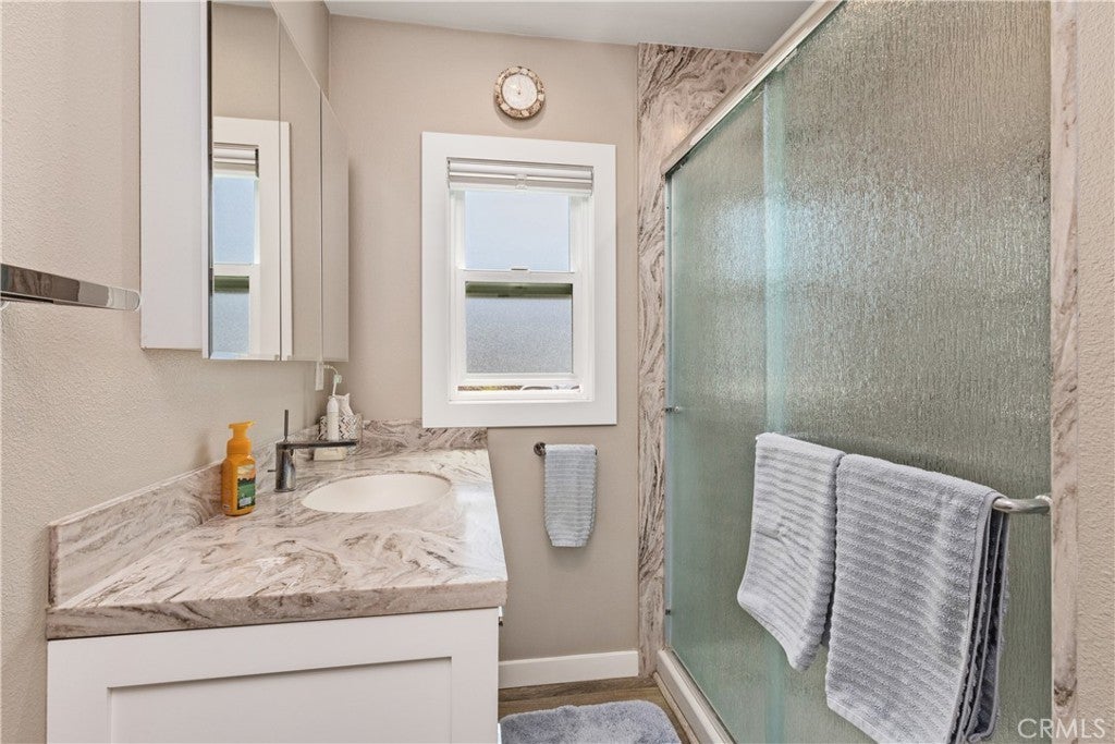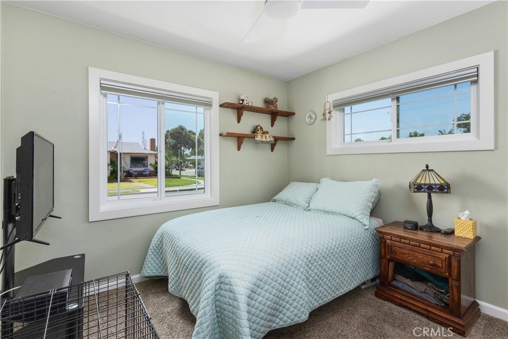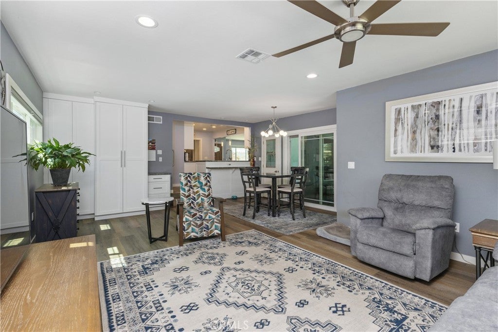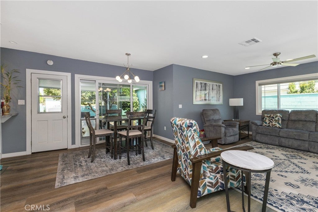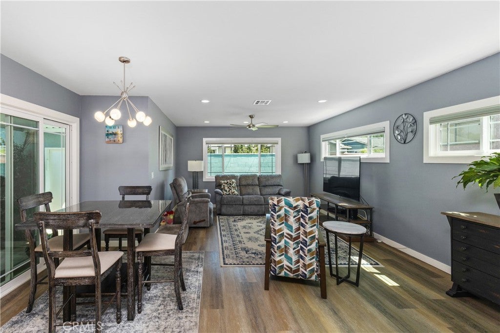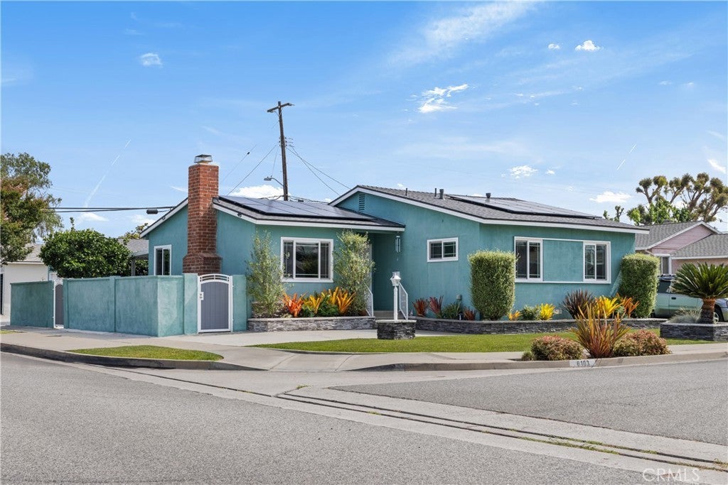 Welcome to this beautifully upgraded 3-bedroom home, ideally located on a corner lot at the entrance of a cul-de-sac street in Lakewood. The open-concept layout seamlessly connects the kitchen, living room, and family room-creating a warm and inviting space perfect for both everyday living and entertaining. The remodeled kitchen is a true centerpiece, featuring elegant Granite countertops, wine fridge, ample cabinetry, and a layout that opens directly to the main living areas. Both bathrooms have been tastefully remodeled with modern finishes, including a walk-in shower and matching Corian counters. Each of the three bedrooms provides generous closet space, with the primary suite boasting a walk-in closet for added convenience. The family room is filled with natural light and includes enclosed cabinetry for stackable laundry, with direct access to a private covered patio and backyard—ideal for relaxing or hosting guests. Recent upgrades include a newer roof and AC system, electrical panel, windows, interior doors, interior and exterior paint, Honeycomb window coverings and 4-year-old solar panels. With its prime location, thoughtful improvements, and welcoming layout, this Lakewood gem is ready to be your next home.