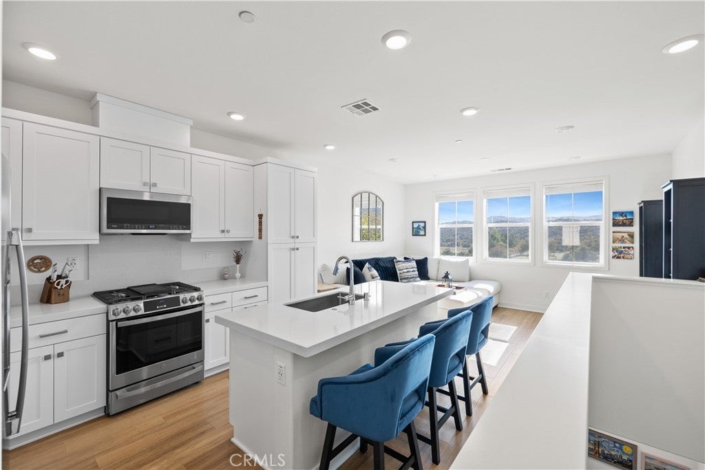 Your Foothills Retreat: Luxury 1-Bed Townhouse with Panoramic Mountain Vistas. A rare opportunity for the discerning buyer: this immaculate 961 sq ft, 1-bedroom, 1.5-bath sanctuary in the desirable Oasis community offers an effortless blend of lock-and-leave luxury and convenience. The home's centerpiece is the Upper Level's open-concept design, anchored by a gourmet kitchen. This space features premium, neutral selections including white shaker cabinets, Carrera quartz countertops, GE Profile stainless steel appliances, and engineered hardwood floors throughout. The spacious Master Suite is also privately situated on this level. The Lower Level is all about flexibility and function, offering a dedicated laundry closet, a powder room, a direct-access attached garage, and a flexible Bonus Room. This room is equipped with a built-in Murphy bed, making it perfect as a guest suite, home office, studio, or gym. Step outside to the oversized front patio to savor stunning, panoramic mountain and valley views that stretch for miles. Immaculate condition means zero work and maximum enjoyment of RMV's celebrated amenities. Enjoy refined resort-style living with access to Rancho Mission Viejo’s premier amenities, including a lagoon-style pool, spa, lap pool, state-of-the-art fitness center, and outdoor movement spaces. Miles of scenic trails, expansive parks, elegant clubhouses, an event barn, and thoughtfully designed social spaces create an elevated lifestyle, complemented by pet-friendly amenities including a dedicated dog park. This is the exclusive, sophisticated, lock-and-leave sanctuary you've been waiting for. Schedule your private showing today.