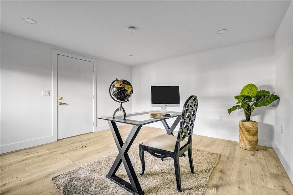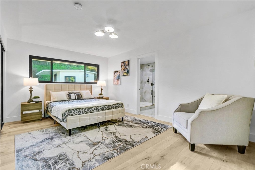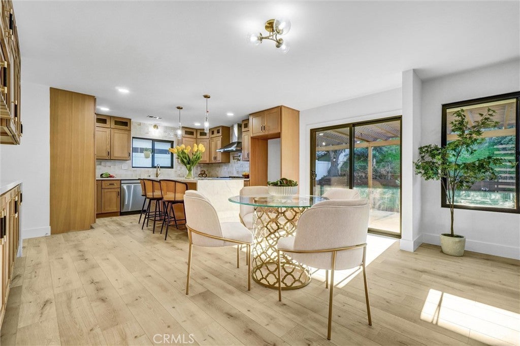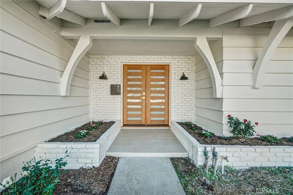 Welcome to your dream home in the prestigious Olive Hills community, where sophistication meets comfort in this meticulously crafted residence. Step through the striking double-door entry adorned with modern walnut doors and discover 1,471 square feet of thoughtfully designed living space featuring luxurious light oak vinyl flooring throughout. The heart of this home showcases a gourmet kitchen that would make any culinary enthusiast swoon, boasting gleaming quartz countertops, premium stainless steel appliances, and elegant light oak shaker cabinets that provide abundant storage for all your kitchen essentials. The adjacent living room creates an inviting atmosphere with its stunning porcelain-clad fireplace, perfect for cozy evenings and entertaining guests. This three-bedroom, two-bathroom sanctuary offers spacious accommodations, including a primary bedroom retreat featuring convenient mirrored wardrobe doors and an attached bath complete with a freestanding tub for ultimate relaxation. The additional bedrooms also feature mirrored wardrobe doors, maximizing both storage and natural light reflection. Contemporary touches abound with recessed lighting and brushed gold hardware adding warmth and elegance throughout. The attached two-car garage provides secure parking and storage, while the expansive yard offers endless possibilities for outdoor enjoyment and includes a separate workshop or office space for those work-from-home needs. Located near excellent schools, beautiful parks including Eisenhower Park, convenient shopping at Vons, and public transportation options, this home perfectly balances tranquil residential living with urban accessibility. Don't miss this opportunity to own a slice of Orange County paradise.