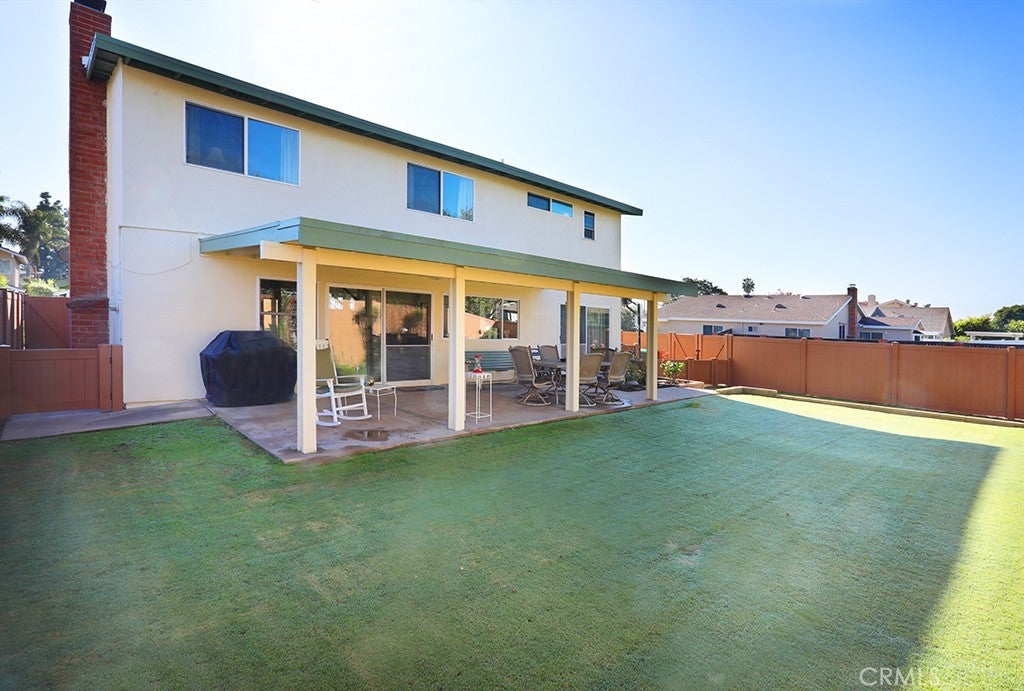 Welcome to this beautifully updated 3-bedroom, 2.5-bath home perfectly situated on a prime corner lot in the sought-after Tustin Meadows community. Enjoy a charming corner location with a street view and one of the most popular models in the tract. Upstairs are all three bedrooms, including the primary bedroom with an ensuite new bathroom! The next room is one with double doors—perfect as a guest room or an ideal home office! The main level features an indoor laundry room and a spacious living area that flows seamlessly into a lovely backyard and large light filled patio, with an enormous patio cover. This home has a wonderful indoor-outdoor living experience. The house has been well loved, maintained, and remodeled with high-quality upgrades throughout, including dual-pane Magic Windows in living room and kitchen; all others windows a Simonton dual-pane. All new interior doors, a fully remodeled kitchen with custom maple cabinets, granite countertops, and a carousel cabinet. The home also boasts Mannington laminate flooring in the kitchen and family room. The Primary bedroom is large; and includes a remodeled Primary ensuite bathroom with vanity area. The double sized shower is new custom Corian, as is the vanity sink! Additional improvements include new tile in the entry, powder room, and laundry room, new carpet throughout, a custom vanity with an integrated sink in downstairs powder room, complete exterior repainting in 2024 and interior repainting completed in 2025, a beautiful new vinyl fence installed in April 2025, and custom cabinetry in the indoor laundry room. Located in a vibrant, friendly neighborhood known for its community park, low HOA ($55.00 a month,) two pools, and convenient access to local shopping, dining, and the 5 and 55 freeways, this home blends modern upgrades with an inviting atmosphere—truly move-in ready!
