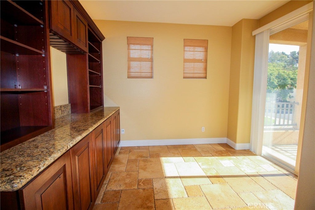 Now available in highly sought after Portico at Rancho Carrillo. Beautiful pride of ownership 2 bedroom, 2 bath condominium with high vaulted ceilings for that open air feel. Direct access from the attached two car garage. Amazing stone flooring laid in meticulous versaille style throughout. The hardwood stairs are so beautiful with Spanish tile raisers. The custom wrought iron rails on the staircase were so thoughtfully created and complemented by the custom pot rack hanging above the kitchen sink. The beautiful granite countertops are in the kitchen and throughout the condo. A Wall bookcase cabinet with wine glass holders was built-in to the Den which opens to the concrete deck for relaxing breaks to enjoy the ocean air. The living room boasts a well placed electric fireplace with a cozy flame. On the living area is a Bedroom, Bathroom, Living room, Den, Dining room and kitchen with plenty of cabinet space. Then you can simply ascend a short staircase to the upper floor for privacy to the primary suite. This floor is incredible with its walk in closet, double sink bathroom with tub and shower. Windows allow the daylight in and On one of those clear days you can peek a boo the ocean view. Located nearby is Leo Carrillo Ranch Historic park, Omni La Costa Spa & Resort, Golf Course,,Batiquitos Lagoon, Hyatt Aviara Four Seasons Resort & Golf Club, and Encinitas Ranch Golf Course . The Ocean is only minutes away ! Please come and experience this home for yourself.
