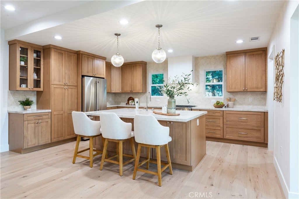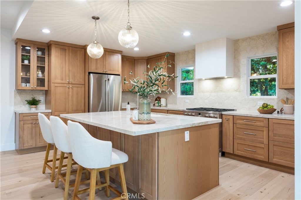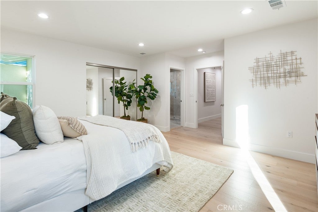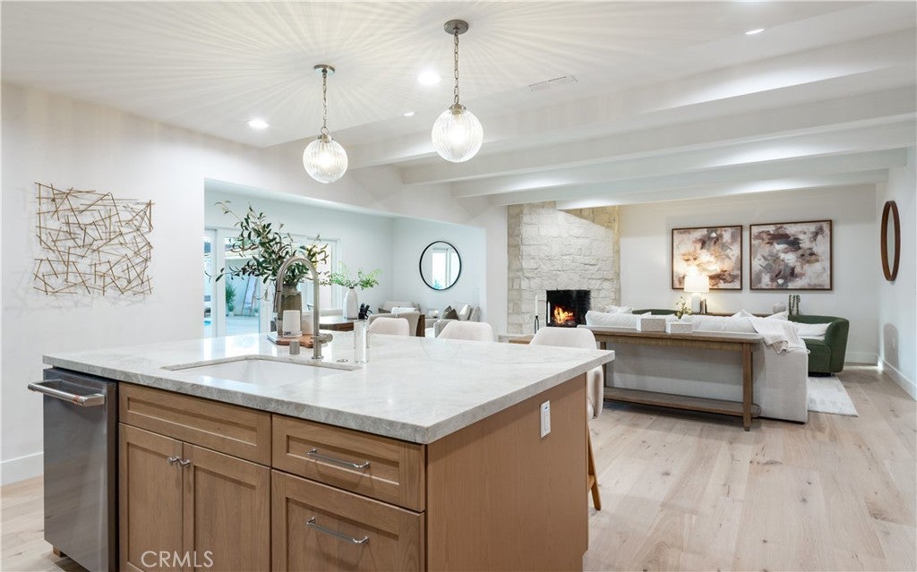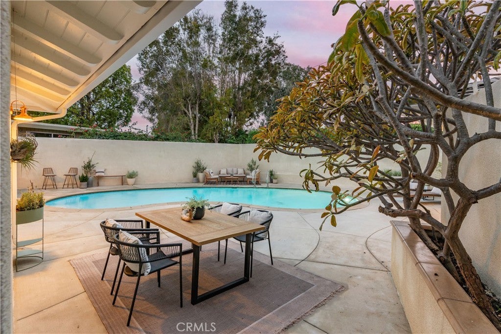 SHOWCASE PARK ESTATES POOL HOME FEATURING A COMPREHENSIVE TOP-TO-BOTTOM REMODEL. This beautifully upgraded residence offers a rare opportunity to own a home with brand-new finishes and a fresh, never lived in feel. Completely transformed with today's most desired features, this stunning residence embodies the warmth and ease of an organic California ranch style home where curated design, natural materials, and thoughtful craftsmanship come together in perfect harmony. Every space has been thoughtfully redesigned with a focus on effortless indoor-outdoor living featuring all new engineered oak flooring and a cohesive palette that guides you through beautifully redefined spaces. The formal living room (potential home office/flex space/fourth bedroom) off the entry features a fireplace and sliders leading to a serene private patio, one of several outdoor spaces throughout the property. The gorgeous and BRAND NEW open concept kitchen features a large island with Taj Mahal quartzite, custom backsplash, generous use of cabinetry, all-new appliances, and an inviting flow into the family room. A walk-in butler’s pantry with beverage service, cabinetry, and wine fridge elevates both daily living and effortless entertaining. A well-placed powder room off the kitchen also connects directly to the pool. The family room centers around a cozy fireplace and opens to the dining room. All the bedrooms have new Milgard windows and bathrooms have been fully upgraded with designer-selected tilework, fixtures, and finishes. The separate bedroom wing boasts three bedrooms and two additional bathrooms. The primary suite off the pool features backyard views, a walk-in closet and a stunning spa-inspired bath. The exterior is just as thoughtfully renewed...the pool has been recently plastered with new waterline tile accents as well as multiple patio areas creating endless opportunities for outdoor living at its finest. There is a long, elegant driveway with an electronic gate which leads to the finished two-car garage (optional casita/gym space). Additional upgrades include tankless water heater, central air, paid off solar panels, new doors, & new Milgard windows. Lovely curb appeal with all new sod, landscaping, & lighting. Residents enjoy the gorgeous tree-lined streets, wide lots, nearby park, and excellent schools. Set on a prime lot in one of the neighborhood’s most desirable locations, this home offers the perfect blend of elevated design and Park Estates living.