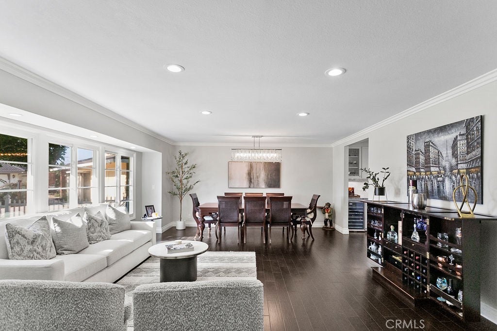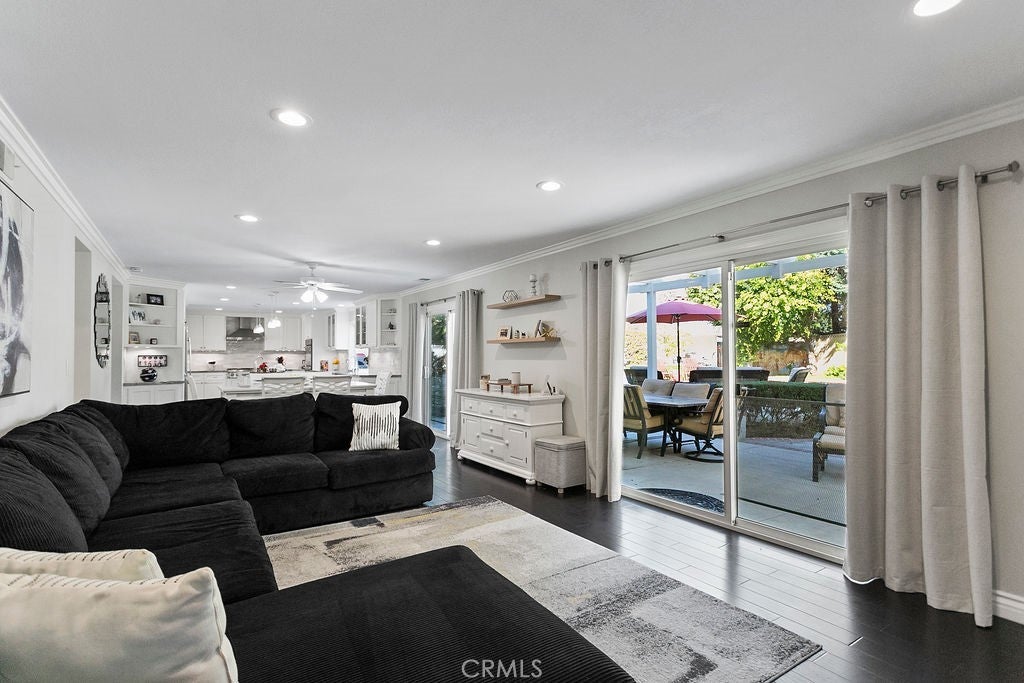 Located on a quiet and tranquil cul-de-sac, this elegantly crafted estate is exploding with upgrades. Situated on an expansive 10,000 square foot lot, and boasting almost 2900 square feet of living space, this masterpiece is the perfect blend of luxury living and outdoor charm. Enter through double glass inlaid front doors into a light bright entry. Dark wood floors and custom base and case give the entry an open and inviting feel. The kitchen is laid out in open concept with the spacious family room for that perfect great room feel. High end SS appliances, double island, glass inlaid uppers, two sinks (prep and main), and scenic picture window of the resort like back yard make this kitchen the benchmark for culinary excellence. The family room is spacious, and rear loaded with multiple access points to the backyard, giving the home a true California indoor outdoor feel. Built in custom cabinetry and stone fireplace surround give the family room a warm and inviting feel while also maintaining an opulent and design conscious feel. The formal living room is sprawling with room for 10 top dining, and plenty of room for full formal sitting set up. A huge picture window bay provides tons of natural light a a perfect view of the quiet cul-de-sac. The primary bedroom is spacious and elegantly finished with dark walls contrasting neatly with crisp base and case. The open primary bath is finished with dual vanities, walk in shower, large soaking tub, seamless glass enclosure, rain head and wand shower, and private water closet. The secondary bedrooms are elegantly appointed with spacious layouts, upgraded base, ceiling fans, floating shelves, and large windows for plenty of natural light. And possibly the crown jewel of the property is the sprawling resort like back yard, complete with covered patio, sparkling pool and spa, built in outdoor kitchen w/ SS pizza oven, BBQ, and giant bar top seating peninsula. The sprawling patio has plenty of space for full outdoor dining AND lounge area for those big game days and nights. Other great features include spacious finished garage, downstairs bedroom w/ bathroom proximity, solar panels, recessed cans, separate indoor laundry room, fully renovated secondary baths, grassy area, fountain water feature, and spacious driveway with extra parking space. Call for additional details!
