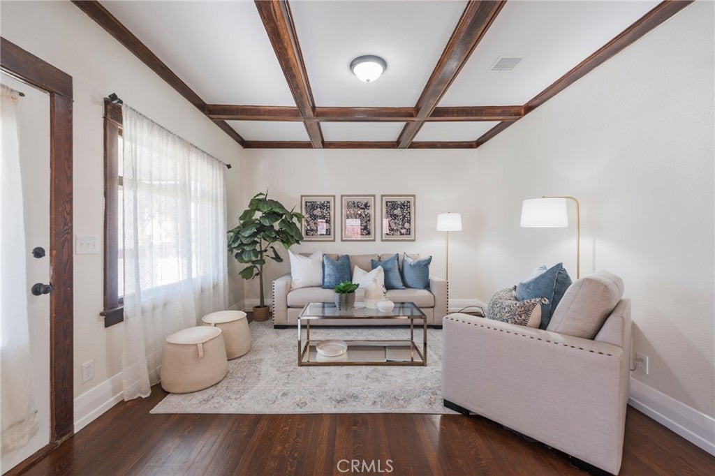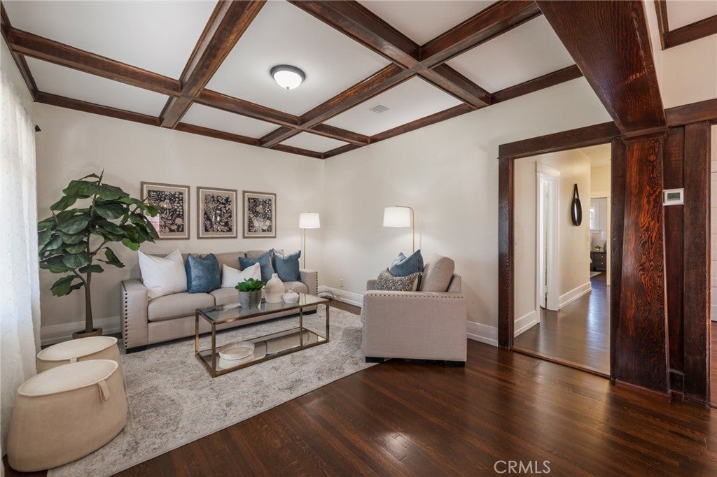 Step into the timeless charm of this quintessential Craftsman Bungalow, an immediate eyecatcher with its significant street presence, large front-facing gable, and an expansive, welcoming front porch. Upon entering, you will be in awe of the stunning period details, including coffered ceilings and polished oak hardwood floors that flow throughout the home. The main living area features a formal living room and dining room, accented by beautiful wainscoting and a cozy bench nook. The kitchen skillfully reflects the home's period with substantial cabinetry while offering modern convenience with a solid granite surface countertop, central island, and a convenient breakfast nook. A glass door leads from the kitchen to the perfectly manicured, private backyard oasis. The home offers three spacious bedrooms and two full bathrooms. Modern amenities include central air and heat, and additional storage is provided by a usable basement. A two-car detached garage features a dedicated laundry area. Location & Lifestyle: This home is situated on a highly-desired, pride-of-ownership street known for its historic bungalows and friendly neighborhood feel. Enjoy an incredible walkable lifestyle: you are just a 10-minute stroll to the Packing District, Center Street Promenade, weekly farmers markets, and local events. It is also only two miles from Disneyland and one block away from Pearson Park—home to a duck pond, seven tennis courts, and the Kobe Bryant Memorial Basketball Court. Significant Financial Benefit: According to the owner this property is already qualified for the Mills Act, with only a few items left to finalize. The Mills Act offers the significant benefit of a property tax credit, potentially reducing your annual property taxes by up to 60% in return for maintaining the historic character of the home. Don't miss this rare opportunity to own a piece of Anaheim history with substantial financial advantages!