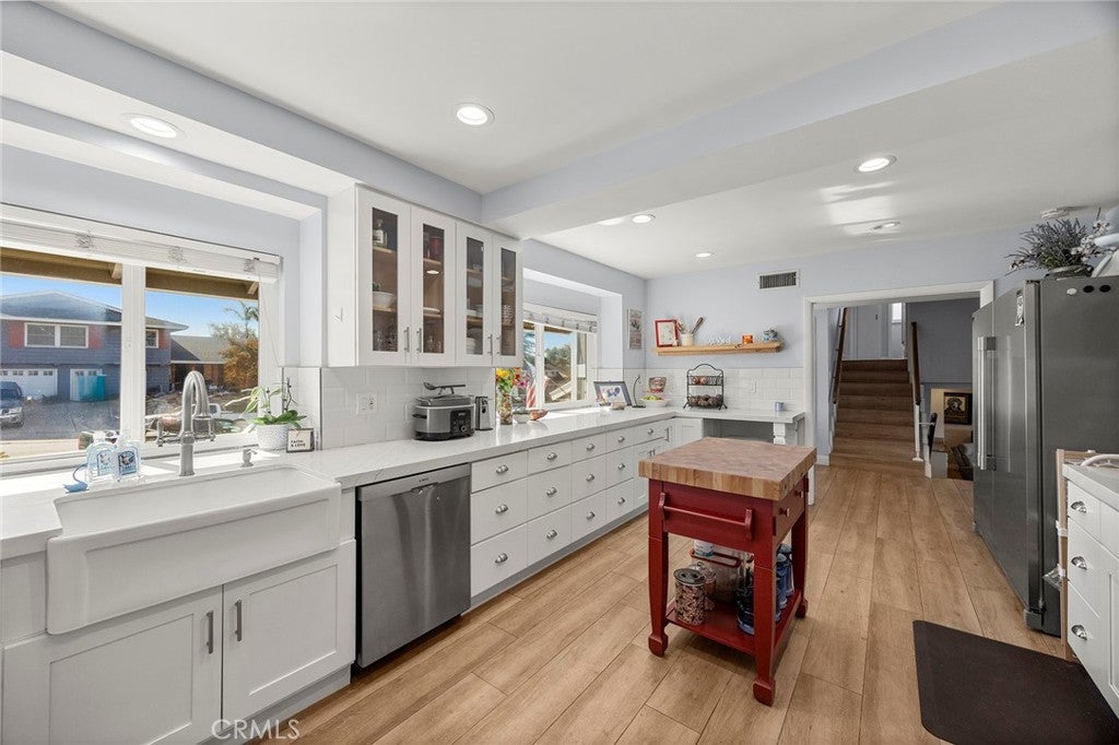 The best deal in BREA!! Seller is willing to entertain offers between $1,399,999 and $1,425,000. This beautifully updated split-level home sits on a quiet cul-de-sac in the highly sought-after North Hills Brea neighborhood and offers 2,928 sq. ft. of living space with a newly remodeled kitchen, refreshed bathrooms, and stunning tile flooring throughout. The inviting kitchen features a dinette-style breakfast nook and opens to the elegant formal dining room, while the main living room provides a warm, family-style setting with a large sliding glass door overlooking the picturesque backyard and sparkling pool. Just downstairs from the living room are two bedrooms, a remodeled bathroom, and a spacious den/playroom with direct access to the pool area. Upstairs, the expansive primary suite includes its own updated en-suite bathroom, and the two additional bedrooms are generously sized with large closets. The backyard is perfect for hosting and relaxation, complete with multiple patio covers, sprawling entertaining areas, and a private wine cellar. The nearly 10,000 sq. ft. lot features a long driveway leading to a detached two-car garage set toward the back of the property. Located in the award-winning Fullerton Joint Union High School District and just minutes from Brea Downtown and the Brea Mall, this home offers exceptional living in one of Brea’s most desirable neighborhoods.