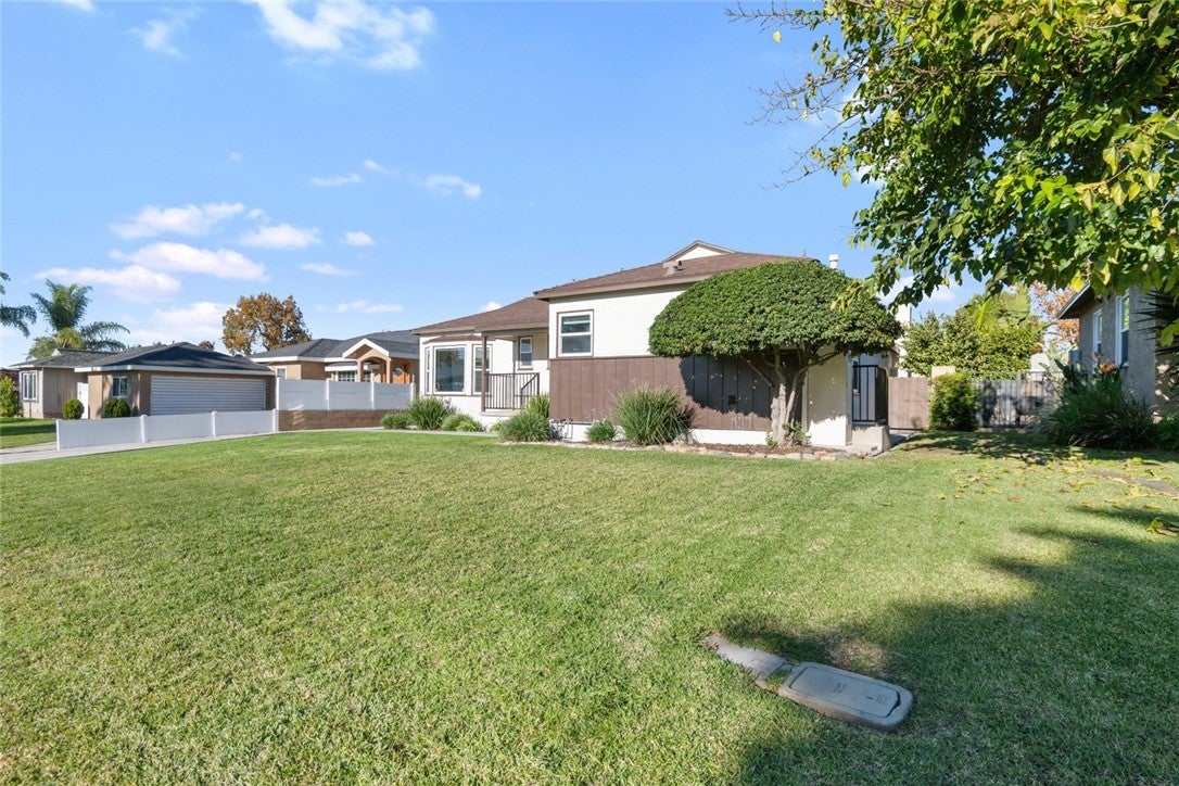 Beautifully upgraded three-bedroom, one-bath single-family home featuring 1,321 sq. ft. of living space on a 5,215 sq. ft. lot. The bright and inviting kitchen offers abundant natural light, ample cabinetry, a garden window, and elegant quartz countertops. All bedrooms are generously sized and include dual-pane windows, wall closets, and laminate flooring. The formal dining area opens to a spacious living room, while a cozy family room with a fireplace and sliding glass doors provides direct access to the backyard. The remodeled bathroom features tile flooring, a new bathtub, an updated sink, and a stunning granite countertop. An indoor laundry room adds convenience with additional cabinet space. Notable updates include central air, recessed lighting, fresh interior paint, new laminate flooring throughout, and a five-year-old roof. The pride-of-ownership neighborhood complements the property’s appeal. Exterior highlights include a large two-car garage with new flooring, a long driveway, and a landscaped, enclosed yard that offers excellent privacy—perfect for outdoor entertaining. Conveniently located near parks, restaurants, and retail shopping centers. Don’t miss this opportunity—schedule your private tour today!