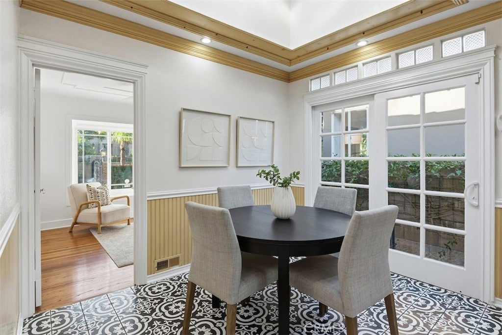 Introducing 266 Park Ave, an enchanting single level home constructed in 1927 by designer & builder Merton E. Cutting and located in the coveted Estates section of Belmont Heights. Sophisticated and private, this elegant property is perched at the crest of the hill on an elevated lot behind a gated entry. Incredible southern exposure drenches the interior with natural sunlight. The oversized living room features high barreled ceilings, fireplace and a large bay window with views of mature landscaping in the secluded courtyard. Step into the gorgeous dining room, framed with a grand lath & plaster tray ceiling and perfectly placed for both intimate dinners or memorable gatherings. Spacious and bright, the chef’s kitchen has a dine-in lounge, vaulted ceilings, double skylights and granite countertops. Escape to any of the four distinctive bedrooms, including a generous primary with gas fireplace, large closet and an ensuite bathroom with soaking tub and walk in shower. The solarium and covered patio collaborate seamlessly, creating an indoor/outdoor space ideal for entertaining and enjoying the coastal breeze. A separate flex space off the garage serves as a gym or home office and is flanked by an outdoor art studio retreat, showcasing the many creative spaces with endless possibilities. An exquisite, one of a kind property with classic touches throughout including oak hardwood floors, vintage doors and hardware, delicate sconces, coved ceilings and so much more. A premier setting in one of the best neighborhoods in Long Beach, just moments from trendy restaurants, shopping and the beach.