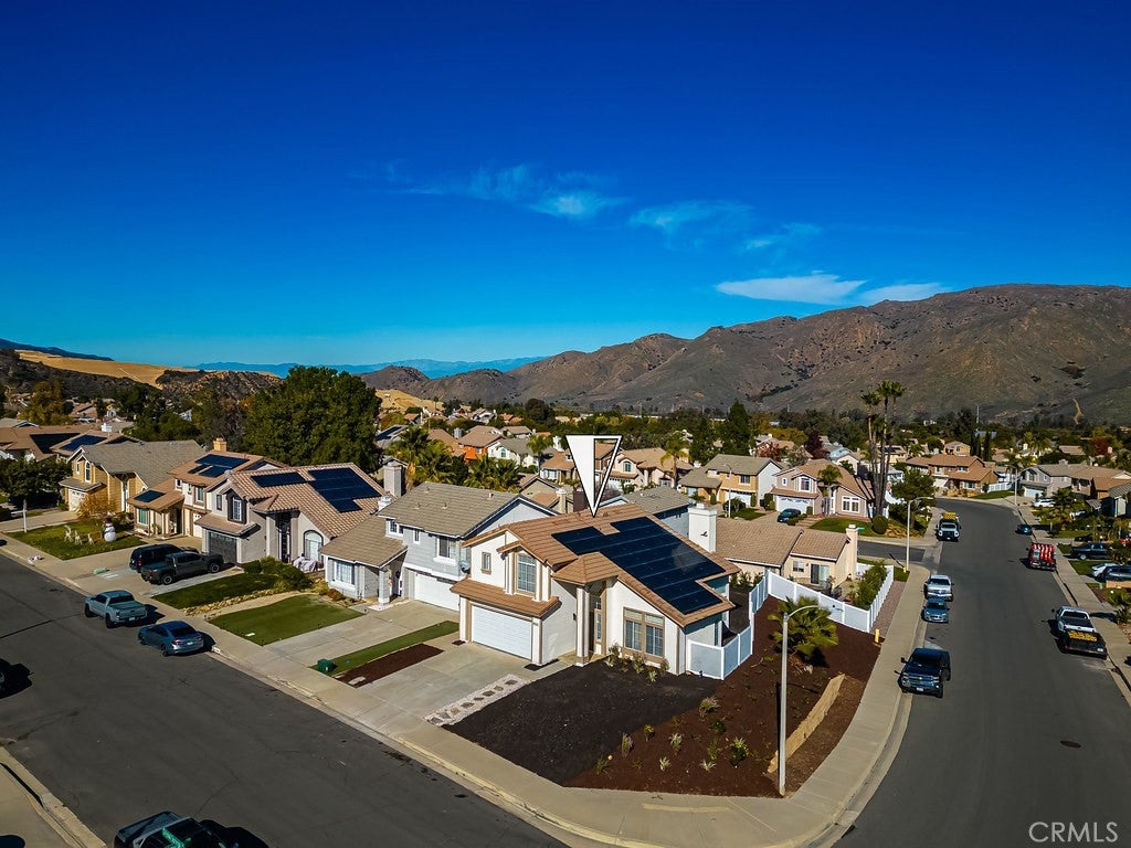 This is IT!! 2-story home in the Horse Thief Canyon community with unobstructed views is ready to be yours! Newly refreshed with wonderful curb appeal new landscaping and mountain views! Ceramic floor entry and wood laminate flooring throughout flow into your formal living room, kitchen with brand new quartz countertops and adjacent dining area. The den/dining room with gas fireplace is perfect for cozy evening dinners. The second floor features 2 expansive bedrooms with a shared bathroom and a 3rd bedroom/primary suite featuring a double-sink, walk-in closet and gorgeous VIEWS of the backyard and mountains. Relax in your patio & enjoy your unobstructed views for intimate al fresco dining, or group entertaining. Close to Luiseno Elementary School, parks and walking trails along with access to Horsethief community amenities that include a pool, spa, club house, tennis court, basketball, dog park and more! Low HOA fee and fully OWNED SOLAR!! Told you this is IT!!