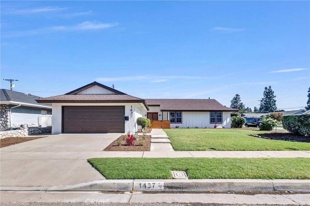 Welcome to this exceptional four-bedroom, two-bathroom home nestled in the coveted Villa Park community, where sophistication meets suburban serenity. Upon approach, elegant double walnut doors herald your arrival into 1,746 square feet of thoughtfully designed living space adorned with lustrous light oak luxury vinyl flooring that flows seamlessly throughout. The heart of this residence showcases a gourmet kitchen that would make even the most discerning chef swoon, featuring gleaming granite countertops, premium stainless steel appliances, and an abundance of storage solutions for the culinary enthusiast. The inviting living room, anchored by a charming fireplace, provides the perfect backdrop for both intimate gatherings and grand entertaining. The primary bedroom serves as a tranquil retreat, complete with mirrored wardrobe doors and an attached private bathroom. Three additional bedrooms, each equipped with mirrored wardrobe doors, offer flexibility for family living, home offices, or guest accommodations. Throughout the home, recessed lighting and brushed gold hardware elevate the aesthetic with contemporary elegance. Practical amenities abound, including an indoor laundry room, attached two-car garage, seller-paid solar panels, efficient tankless water heater, and central air and heating systems for year-round comfort. The location proves equally impressive, with proximity to highly-regarded Villa Park Schools and convenient access to Ralphs Fresh Fare for daily necessities. Villa Park High School sits nearby, while Grijalva Park offers recreational opportunities. The Orange train station provides excellent transportation connectivity. This residence perfectly balances modern luxury with everyday functionality, creating an ideal sanctuary for contemporary living.
