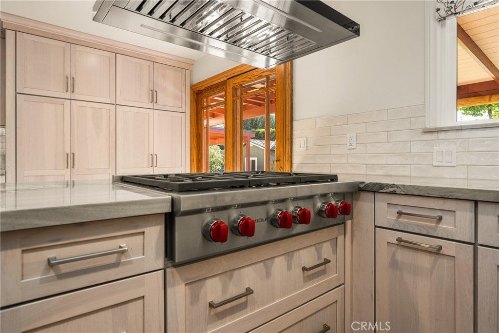 - AppliancesSixBurnerStove, Dishwasher, Gas Cooktop, Disposal, Microwave, Refrigerator, Range Hood, Tankless Water Heater, Convection Oven, Self Cleaning Oven, Warming Drawer