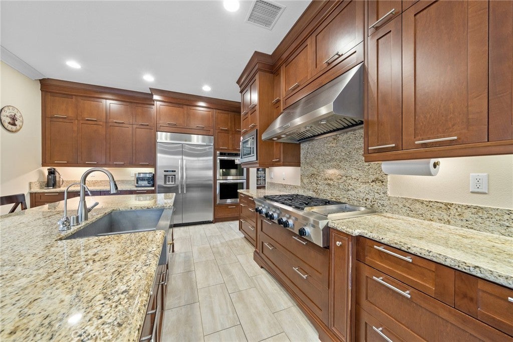 - AppliancesSixBurnerStove, Built-In Range, Double Oven, Dishwasher, Gas Oven, Gas Range, Microwave