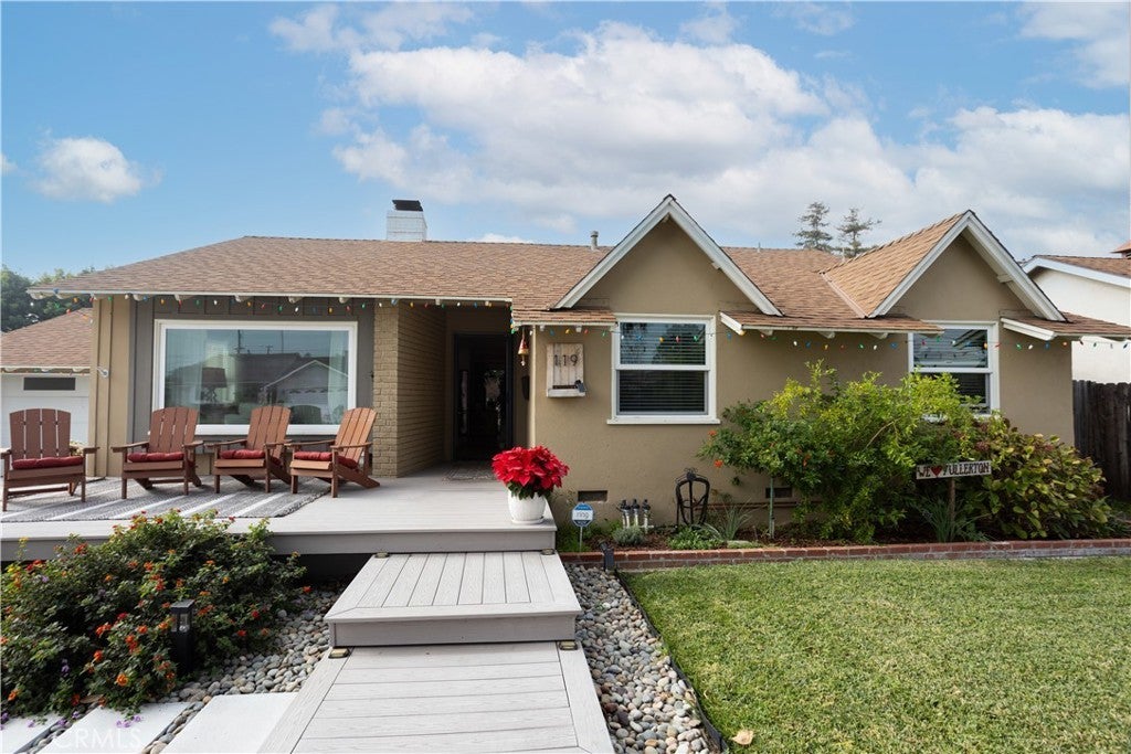 Welcome to 119 N. Annin Avenue, a charming and fully renovated single-story home located in one of Fullerton’s most established and centrally located neighborhoods. This beautifully upgraded home offers 3 bedrooms, 2 full bathrooms, and approximately 1,340 sq ft of thoughtfully designed living space. Nearly every detail has been updated, including new flooring throughout, custom light fixtures, recessed lighting, a new sliding glass door, an expansive sunroom, Tankless Water heater and two Timbertech decks, one in the front yard and one off the primary bedroom. Step inside and immediately appreciate the attention to detail and abundant natural light that fills the open floor plan. The stunning kitchen features new white cabinetry, quartz countertops, and stainless steel appliances. Adjacent to the kitchen is a spacious dining area complete with a cozy white brick fireplace and peaceful views of the backyard. The primary suite serves as a relaxing retreat, offering an ensuite bathroom with a travertine stone shower with dual shower heads, and sliding door access to a private Timbertech deck perfect for enjoying warm summer evenings. Down the hallway are two additional bedrooms and a beautifully updated full bathroom with dual sinks. The expansive sunroom/patio that is 384 sq ft is ideal for outdoor dining and entertaining, with views of the tranquil backyard. The yard also features a she-shed/man cave, fruit-bearing lemon and orange trees, lush landscaping, and a vegetable garden for your personal enjoyment. Additional highlights include an elongated driveway, and an attached 2-car garage with laundry located inside. All of this is set on a generous 7,200 sq ft lot, conveniently located near schools, parks, shopping centers, restaurants, Downtown Fullerton, Cal State Fullerton, Fullerton College, and the 57 and 91 freeways. This beautifully upgraded, move-in ready home is one you won’t want to miss!