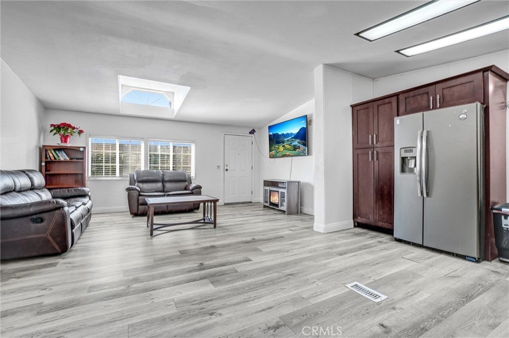 Welcome to this beautifully updated mobile home located in the Katella Mobile Home Estates community. This spacious home offers 3 bedrooms and 2 full bathrooms, providing comfort and flexibility for everyday living. Step inside to a bright and inviting living room featuring vaulted ceilings that enhance the sense of openness. The open-concept layout seamlessly blends the living room and kitchen, creating a functional and spacious area ideal for entertaining or relaxing with family. The home has been thoughtfully updated with laminate wood flooring throughout, adding a modern touch and easy maintenance. Additional highlights include a tankless water heater, offering energy efficiency. Conveniently located near shopping, dining, and major freeways, this move-in-ready home is a fantastic opportunity to enjoy comfortable living in a well-established community.