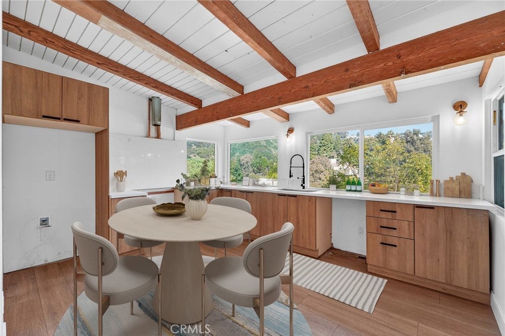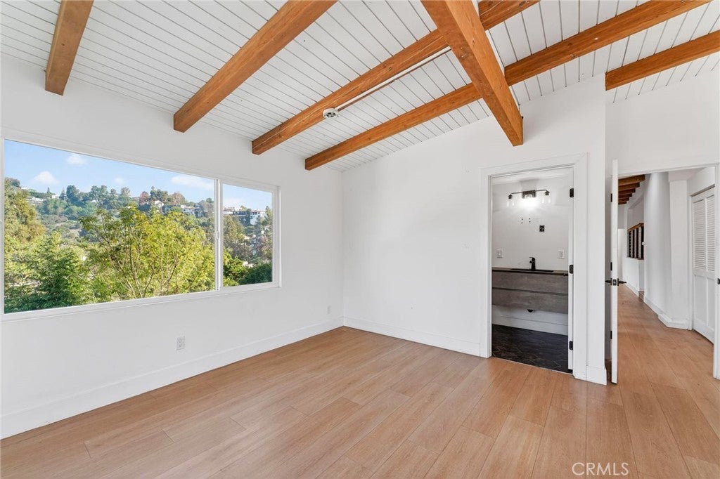 Located in the desirable Hollywood Dell pocket of Los Angeles, this 1958 split-level post-and-beam home sits on a rare 12,514 sq ft lot surrounded by mature foliage, offering exceptional privacy and a true hillside feel. The 2,383 sq ft residence features 4 bedrooms and 2 bathrooms, with a flexible layout designed for indoor-outdoor living. The main level includes an open entry with deck, a light-filled kitchen, adjoining den, two spacious bedrooms, and a full bath, plus a bonus room accessed by a private staircase. The lower level offers a family room with a wood-burning fireplace, an additional bedroom and bath, and hidden bonus storage or workspace. Multiple balconies and access points lead to a private, sunlit pool and deck nestled among the trees. The oversized lot presents potential for additional living space, ADU, or landscape enhancements. Notes: the property has no garage, consists of three tied lots, and certain improvements—including the carport, front parkway, and select bonus areas—have city compliance issues.
