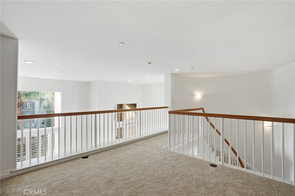 Experience elevated Playa Vista living in this striking two-story penthouse condo located in the sought-after Paraiso community. Built in 2003, this spacious 1,886 sq ft residence offers 2 bedrooms and 2.5 bathrooms with a dramatic, open layout designed to maximize light, volume, and indoor-outdoor flow. The main living level features soaring two-story ceilings, expansive windows, and a sophisticated living room with fireplace and custom built-ins, opening to a private balcony ideal for enjoying coastal breezes. The living and dining areas connect seamlessly to the chef’s kitchen, complete with stainless steel appliances, generous cabinetry, ample counter space, and a breakfast bar perfect for entertaining. A versatile upper-level loft overlooks the living space below and functions beautifully as an office, media room, or flex space. Downstairs, two generously sized bedrooms provide privacy and comfort. The primary suite includes a walk-in closet, private balcony, and spa-inspired en-suite bath with dual vanities, soaking tub, and glass-enclosed shower. Additional highlights include abundant natural light throughout, side-by-side laundry, distinctive architectural details, and two designated parking spaces. Enjoy resort-style Playa Vista living with access to The CenterPointe Club, The Resort, Runway shopping and dining, parks, and walking paths—offering the perfect blend of luxury, convenience, and vibrant community living.