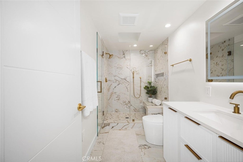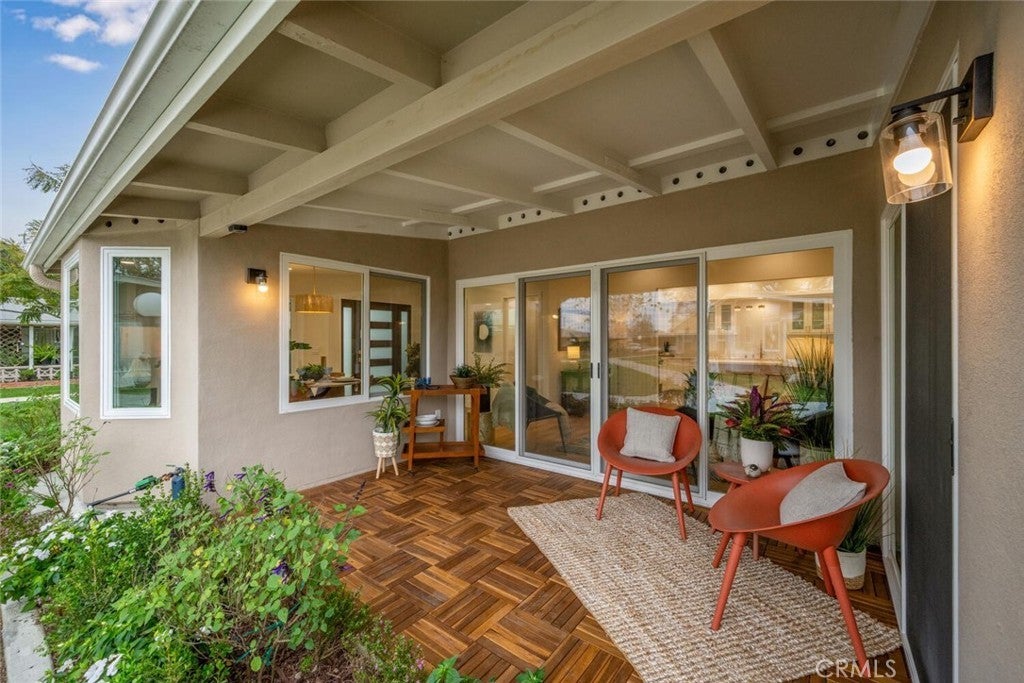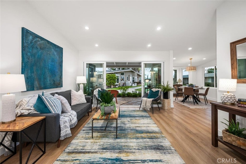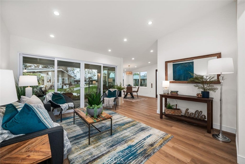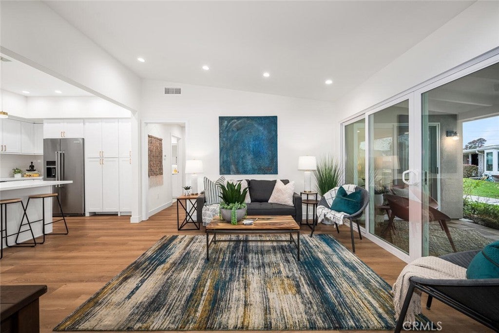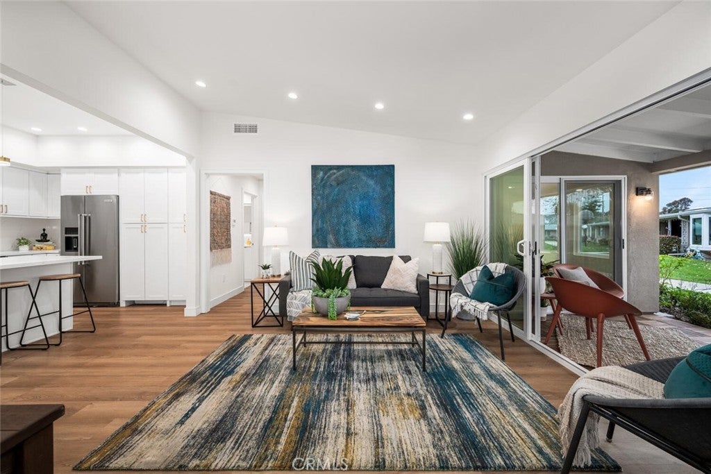 Just a short stroll from "Central Park", this modernized and luxurious home in Mutual 7 offers elevated living at every turn. Construction completed in December of 2025. As you approach through the redesigned walkway with flagstone and designer door entry, you’re welcomed by a widened foyer featuring a stylish half bath with an illuminated LED mirror and vanity accented by a floor to ceiling tiled backdrop. The adjacent dining room is filled with natural light from a charming new bay window, complemented by new double-pane windows and recessed lighting throughout. The heart of the home is a stunning, light-filled chef’s kitchen showcasing an elevated ceiling with skylight, quartz countertops, white cabinetry, all-new stainless steel appliances including wine fridge, and chic pendant lighting. A generous island provides the perfect gathering space for socializing while meals come together. The living room opens through 12' sliding glass doors to a private patio finished with beautiful wood decking—an ideal extension of the living space for relaxing or entertaining. Just beyond, the main bathroom delivers a spa-like retreat with a custom LED mirror vanity, quartz countertop, skylight, and a new frameless glass-enclosed Italian Calacatta tiled shower accented by top of the line brass fixtures. The primary bedroom has been thoughtfully reimagined and fully expanded, offering recessed lighting and a spacious walk-in closet. The second bedroom is equally inviting, featuring wall-to-wall mirrored closets and an operable skylight overhead. Additional highlights include a RARE new tankless water heater, new central HVAC, solid core designer doors throughout and a tastefully concealed in-unit washer and dryer, completing this exceptional and move-in-ready home. Experience the best life in this new construction home in one of the most desired locations. SENIOR COMMUNITY-OFFERS THE FOLLOWING AMENITIES: 9 Hole Golf Course, Swimming Pool, Jacuzzi, Gym, Table Tennis, Shuffle Board, Billiards, Pickle Ball, and Bocce Ball courts. Amphitheater, 6 Clubhouses featuring: Art Room, Sewing, Crafts, Wood Shops, Lapidary, Pool Tables, Over 200 Clubs, LWSB is a Security-Guard-Gated Community. Also Library, Friends of Library Bookstore, Credit Union, Health Care Center, Pharmacy and Post Office (CARPORT 89, SPACE 25).