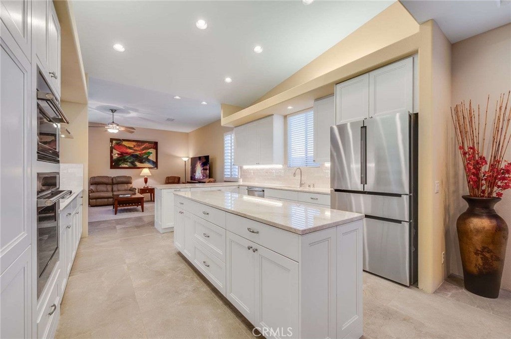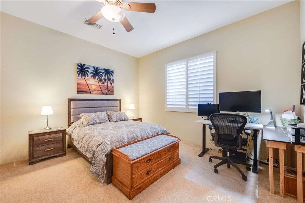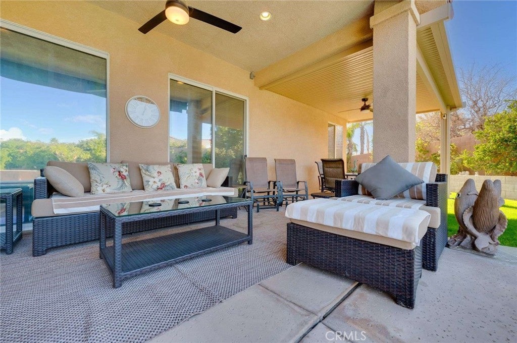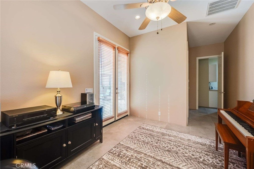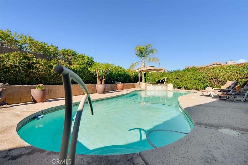 Cathedral City sits in the heart of the Coachella Valley, bordered by Palm Springs to the west and Rancho Mirage to the east — making it an integral part of the Palm Springs metro resort corridor. Tucked away on a quiet cul-de-sac is this exceptional home, set on a premium, oversized lot with beautiful mountain views and a backyard designed for true desert living and entertaining. From the moment you arrive, a fenced front courtyard welcomes you with a charming fountain—an ideal, private space for morning coffee or a safe retreat for pups. Inside, the home offers tall ceilings, abundant natural light, and thoughtful architectural details throughout, including plantation shutters, custom built-ins, and a cozy fireplace. The gourmet kitchen is the heart of the home, featuring quartz countertops, glossy white cabinetry, a generous center island, double ovens, a warming drawer, recessed lighting, and under-cabinet lighting. Adjacent is a formal dining room complete with a built-in buffet. The spacious primary suite offers a huge walk-in closet and a spa-inspired bathroom with a soaking tub. A flexible fourth bedroom or casita opens directly to the courtyard, making it perfect for guests, a home office, or multi-generational living. An inside laundry room adds everyday convenience. Step outside to a resort-style backyard made for entertaining, featuring a sparkling pool and spa, a grassy area with citrus trees, a large covered patio, and a retractable awning that extends the outdoor living space—ideal for sunset gatherings with mountain views as your backdrop. A tile roof completes this well-appointed desert home. Easily accessible to Palm Springs airport, Cimarron Golf Resort, and the ten freeway. This home delivers the lifestyle buyers dream of in the Coachella Valley. With its oversized lot, mountain views, and seamless indoor-outdoor flow, this property should be experienced in person. Enjoy the freedom of no association dues and owned solar.