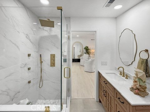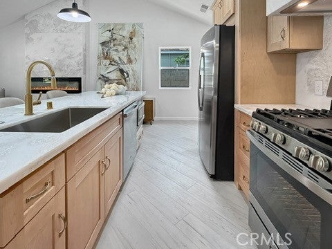 VERY RARE opportunity for a massive 10,000+ sqft lot with great ADU potential for this area in Fullerton! DON’T MISS OUT on this recently updated and spacious TURNKEY home located in a highly desired neighborhood of Fullerton! To start off, this home boasts 3 bedrooms and 2 bathrooms including a large master suite with its own luxurious master bathroom and a walk-in closet! Throughout the home you'll find LED recess lighting, premium vinyl waterproof flooring, a stunning open-concept kitchen containing high-end quartzite countertops, a large center island and wood shaker cabinets with self-closing drawers! Also, along with the remodeled kitchen there will be a full high-end stainless steel appliance package and the barn-door covered laundry area comes with a sink and washer/dryer included! For the exterior, the front yard contains an attractive curb appeal with custom perimeter wood fencing and a walkway that leads to the inviting front porch! Then the enormous backyard contains a spacious covered patio area perfect for seating and outdoor entertainment, freshly laid sod throughout the yard including timed sprinklers and a concrete driveway that leads to the TWO 1-car garages making the entire backyard a great space for future family gatherings! In addition, this home offers a 200 amp electrical panel, high efficiency dual-pane vinyl windows throughout and central air/heating! To top it all off, this home is conveniently located within minutes of the 91 freeway and Downtown Fullerton which contains beloved shops, popular restaurants and entertainment!