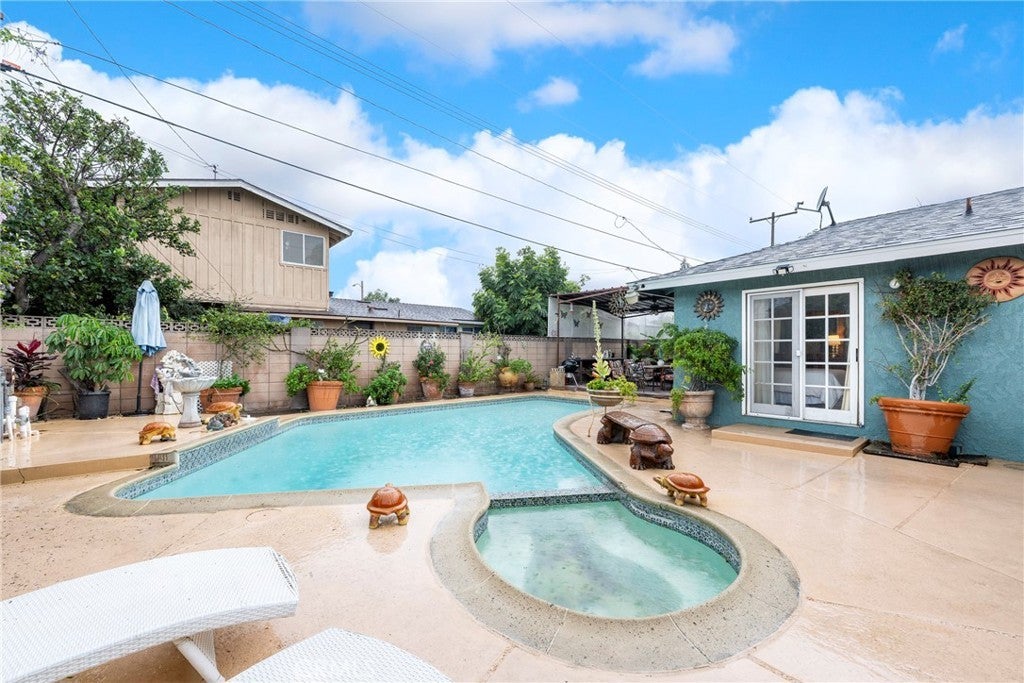 Welcome to this move-in ready Anaheim pool home offering 3 bedrooms, 1.5 bathrooms of comfortable living on a spacious 6,000 sq ft lot. Built in 1956, this home delivers timeless charm paired with smart modern upgrades you’ll appreciate. Inside, enjoy warm wood floors, newer recessed lighting throughout, and an open kitchen and dining area designed for both everyday living and entertaining. The kitchen features wood cabinetry, a full pantry, and a breakfast bar that flows seamlessly into the dining space, perfect for hosting or casual meals. The bright and spacious living room is filled with natural light and enhanced by a cozy gas fireplace. Down the hall, you’ll find three bedrooms, one full bathroom, and an additional half bathroom, offering a functional layout ideal for families or guests. Thoughtful upgrades completed in recent years include a brand-new roof (2025), fresh interior and exterior paint (2025), rewired electrical panel, fully upgraded copper plumbing with galvanized lines removed, double-pane windows (excluding rear slider), and a furnace replaced approximately two years ago. The home is cooled with wall A/C units and enhanced by ceiling fans for added comfort. Step outside to your private backyard oasis, featuring a sparkling pool recently filled with fresh water, along with a working pool pump and a heater, ideal for entertaining, relaxing, and enjoying Southern California living year-round. The extra-large driveway accommodates up to six cars, a rare and valuable feature. In the garage, you’ll find ample room for additional storage, along with the washer and dryer, which are included. The home also features automatic front yard sprinklers for easy maintenance. This is a fantastic opportunity to own a well-maintained home with big-ticket upgrades already completed, located in an established Anaheim neighborhood close to shopping, dining, and freeway access. This home may also qualify for a $20k homebuyer grant program for qualified homebuyers. Ask your agent for details! 2136 W. Clover Avenue; You Will LOVE Living Here!