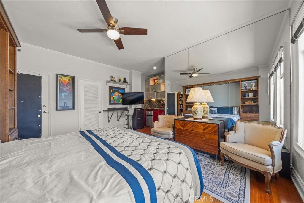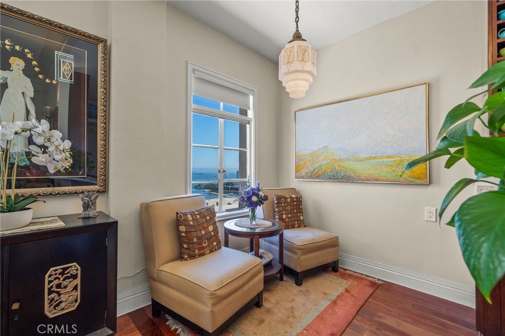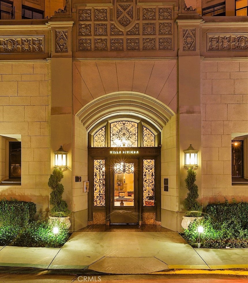 Penthouse-Level Oceanfront Living at the Iconic Villa Riviera Ownership includes the distinctive designation of a landmark on the National Registration of Historic Places. Perched high above the coastline, this exquisite 2-bedroom, 2-bath residence offers sweeping, unobstructed ocean views from every room and nearly 12-foot ceilings that elevate both light and scale. Originally two units thoughtfully combined, the floor plan provides exceptional flexibility—currently configured as a one-bedroom plus den, with the ability to re-separate the space into two private living areas or improve the two bedroom scenario. Sellers would consider selling separately - call for pricing. The primary suite features Brazilian mahogany flooring, refined lighting, and a serene coastal ambiance. A secondary suite—previously used as an efficiency—includes a built-in breakfast bar, kitchenette, walk-in closet, Bathroom with charming Deco tile work, pedestal sink & Sloane commode, making it ideal for flexible lifestyle, extended living, or potential income (buyer to verify). Set within the legendary Villa Riviera, a celebrated French Chateau-esq Neo-Gothic landmark known for its copper roof, gargoyles, and award-winning preservation, residents enjoy a lifestyle few buildings can replicate. HOA dues include all utilities—gas, electricity, heat, hot water, cable TV, and internet—providing meaningful monthly value. Owners benefit from significant Mills Act property tax savings, transferred to the buyer at closing. Community amenities include a grand ballroom with catering kitchen, ocean-view sundeck, BBQ areas, community guest suite, hidden garden with fountain and serenity. Parking on site is separately managed by the HOA. A rare opportunity to own a true destination residence where historic elegance meets elevated coastal living.