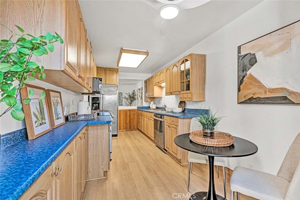 Welcome to 5715 E. Stillwater Ave #7, A Move-In-Ready End-Unit Condo Located in the Highly Sought-After Villeurbanne Community of Orange. This Immaculate Residence Features Two Bedrooms, Two Bathrooms, Along with Plantation Shutters, a Newer Water Heater, Newer A/C and Furnace System, and Upgraded PEX Piping Throughout the Home. The Inviting Family Room Showcases Vaulted Ceilings, a Cozy Fireplace, Direct Patio Access, and Greenbelt Views Creating a Bright and Welcoming Space. The Kitchen Offers Ample Cabinetry, a Charming Breakfast Nook With Patio Access, and Opens Into The Adjacent Dining Area—Ideal for Entertaining. The Spacious Primary Suite Features Two Closets and a Beautifully Remodeled Bathroom With Dual Vanities, a Walk-In Shower with Frameless Glass, and Private Patio Access Overlooking the Tranquil Stream that Runs Through the Community. Additional Highlights Include an Indoor Laundry Room and an Oversized One-Car Garage with Direct Access and Built-In Storage. The Villeurbanne HOA Amenities Include a Resort-Style Pool And Spa, Clubhouse, Scenic Creeks, Trash and Water Service. Conveniently Located Near Irvine And Peters Canyon Regional Parks, as well as Shopping and Dining, with Easy Access to the 55, 22, and 91 Freeways and the 241/261 Toll Roads. 5715 E. Stillwater Ave #7 is a Must See!