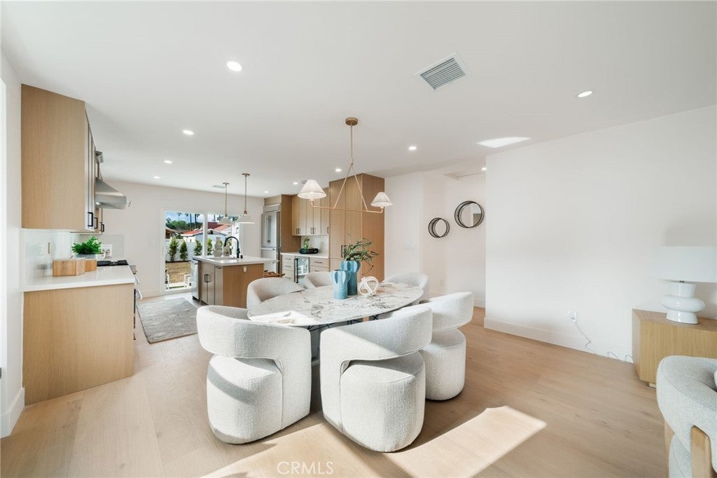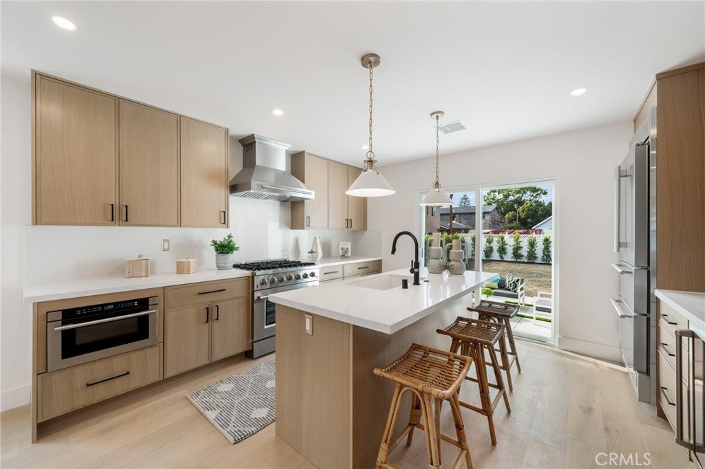 Welcome to this stunning transitional modern home offering 3 bedrooms, 2 full baths and approximately 1,315 sqft of airy and bright open-concept living space in the desirable Park Mesa Heights neighborhood. Designed for modern living, the open floor plan seamlessly connects the living, dining, and kitchen areas. The chef’s kitchen features custom white oak cabinetry, white quartz countertops and high quality Forno appliances, complemented by engineered white oak flooring throughout the home. Both bathrooms feature neutral porcelain tile, modern vanities and clean contemporary finishes. The true standout feature is the spacious backyard with approved ADU plans and Ready-To-Issue (RTI) permits, offering income producing opportunity. Build a second unit for rental income, short- or long-term leasing, guest quarters, or multigenerational living—a rare and valuable asset in today’s market. Conveniently located near parks, shopping, dining, major freeways, LAX, SoFi Stadium, and Downtown Los Angeles, this property combines turnkey living with strong future upside. A rare blend of modern design and future income potential—this opportunity won’t last. Don’t miss out.