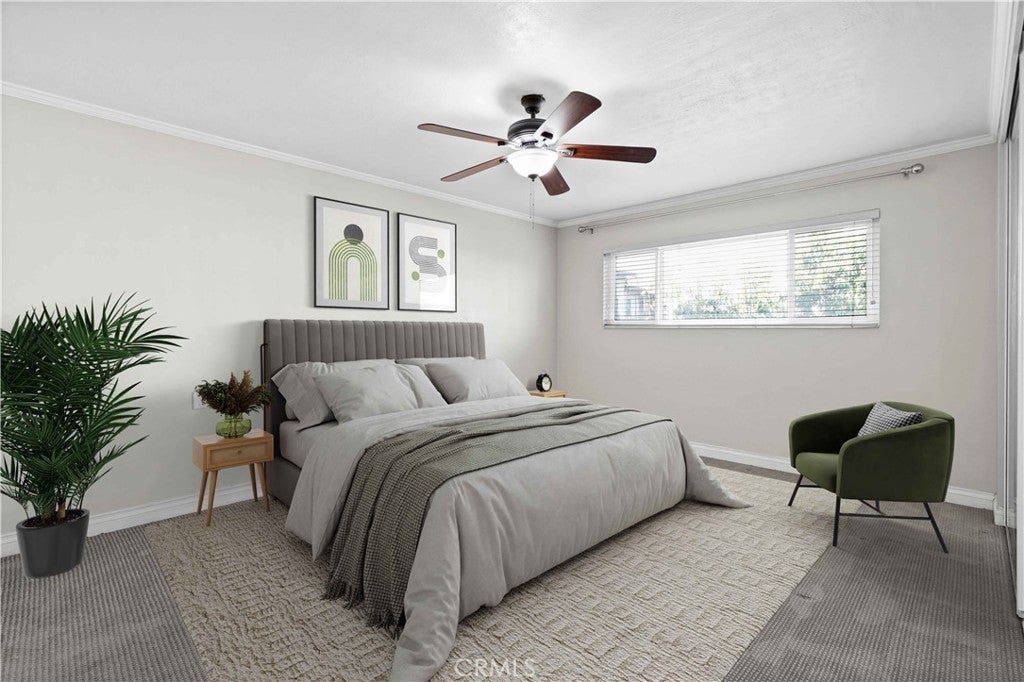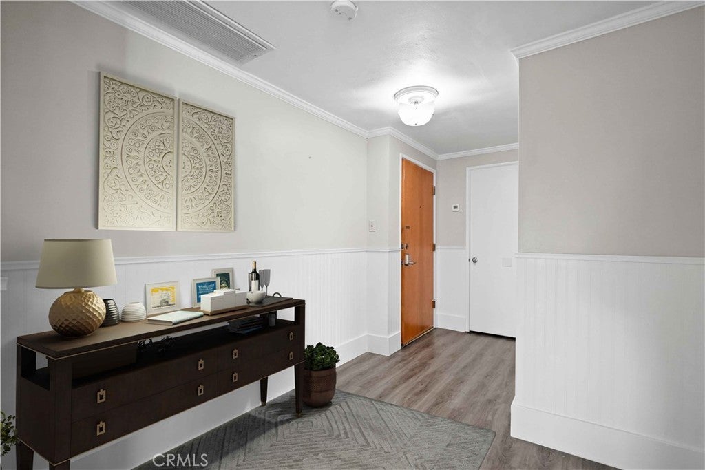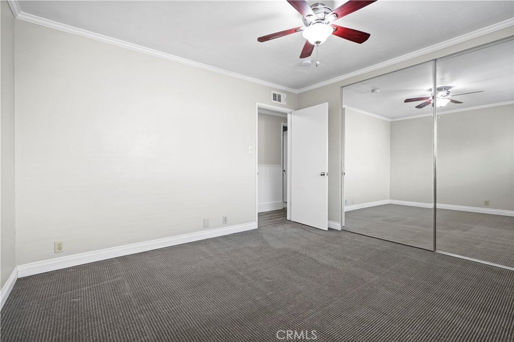 Welcome to Beverly Park Condominiums located in the Highly Coveted area of North Whittier. This gated community is in close proximity to the Whittier Greenway Trail, Beautiful Whittier Hills, and Historical "Uptown" Whittier which offers indoor/outdoor dining, speciality shops, live music venues, and more. The condominium is an end unit and is so spacious. Once you enter this two bedroom two bath home you will be delighted with the upgrades and the floor plan. The formal entry has laminate flooring and beautiful white wainscoting. The galley kitchen has been upgraded and features lots of cabinet space, granite countertops, a farm sink, all black appliances, and tile flooring. There's a separate dining area and the living room is huge! In the living room there's enough space to set up a home office, kids play area, a gaming area, etc. There's a primary bedroom with an en-suite bathroom that features new tile flooring and a new vanity. The additional bedroom is just as roomy as the primary bedroom. Both bedrooms are carpeted and have large closets with mirrored closet doors. Other fantastic features in this home include: dual pane windows and slider, crown molding throughout, lots of storage, ceiling fans, new water heater, and a new forced air heating unit and a/c condenser. All the major components have been upgraded and/or replaced. There's a community laundry room where the owners can use the machines at no cost. Did I mention that the HOA pays for all utilities except electricity. A very rare feature is this unit comes with 2 private parking spots, directly across from the elevator, in a gated subterranean parking structure. (the majority of the units have only 1 parking spot) In the back of the complex there's gated parking, a grassy area for the kids to play, and an avocado tree for all to enjoy! This pet friendly complex is just minutes away from the 605, 60, 10, and 5 freeways.