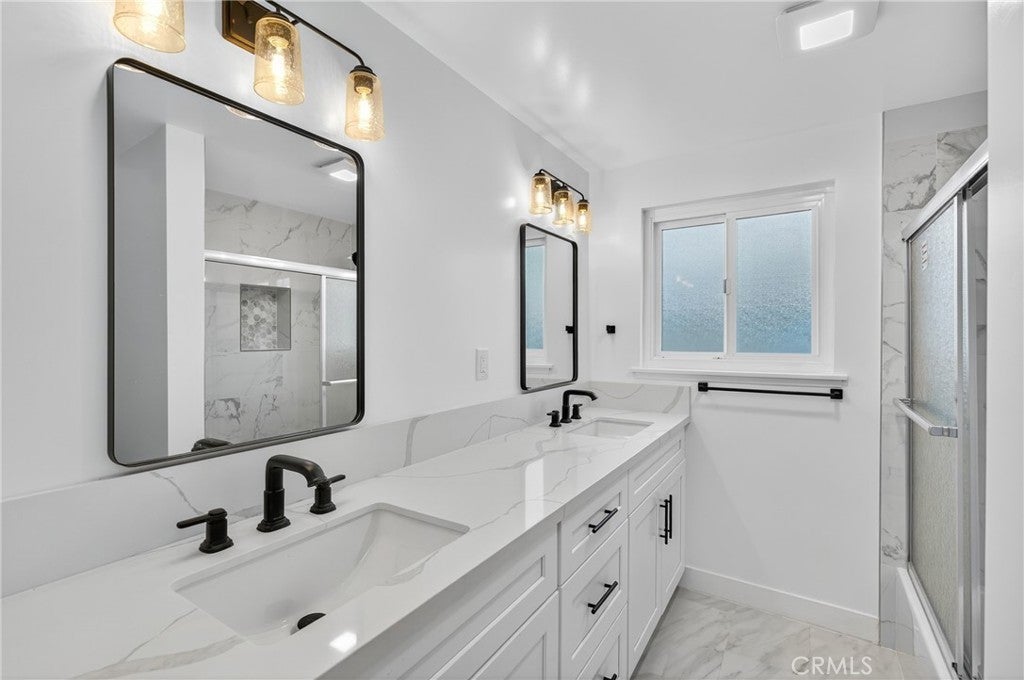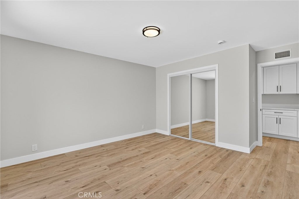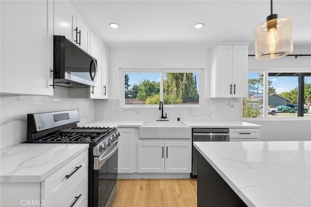 Welcome to this beautifully reimagined residence, perfectly situated on a tranquil tree lined street framed by blooming Jacaranda trees each spring. Thoughtfully renovated with a focus on quality craftsmanship and timeless design, this home offers an elevated living experience that blends modern comfort with refined sophistication. From the moment you step inside, you are greeted by smooth finished walls, elegant ceilings, and premium vinyl plank flooring that flows seamlessly throughout. Every interior door, entry door, and closet door has been replaced, creating a cohesive and polished aesthetic. A custom built hallway vanity with upper and lower cabinetry and a sleek quartz countertop provides stylish and functional storage while enhancing the home’s upscale appeal. The fully renovated bathroom serves as a serene retreat, featuring a custom vanity, designer tile work, a new soaking tub, and contemporary lighting that evokes a spa like atmosphere. The kitchen is both beautiful and functional, showcasing shaker style soft close cabinetry, quartz countertops, and an oversized island with seating, ideal for both intimate meals and large gatherings. The open floor plan extends into the bright and inviting family room, complete with a cozy fireplace and sliding glass doors that lead to the backyard, creating a seamless indoor outdoor living experience. The expansive, level backyard offers endless potential, whether you envision building an ADU, designing a resort style pool, or creating a private garden oasis. Additional highlights include a dedicated laundry room, a spacious two car garage, and a versatile backyard shed that can serve as extra storage or a creative workspace. With sophisticated updates, exceptional attention to detail, and a highly desirable location, this home stands out as a rare opportunity to enjoy elevated living in a peaceful, picturesque setting. It is a truly move in ready property that combines luxury, comfort, and future potential in one beautiful package.