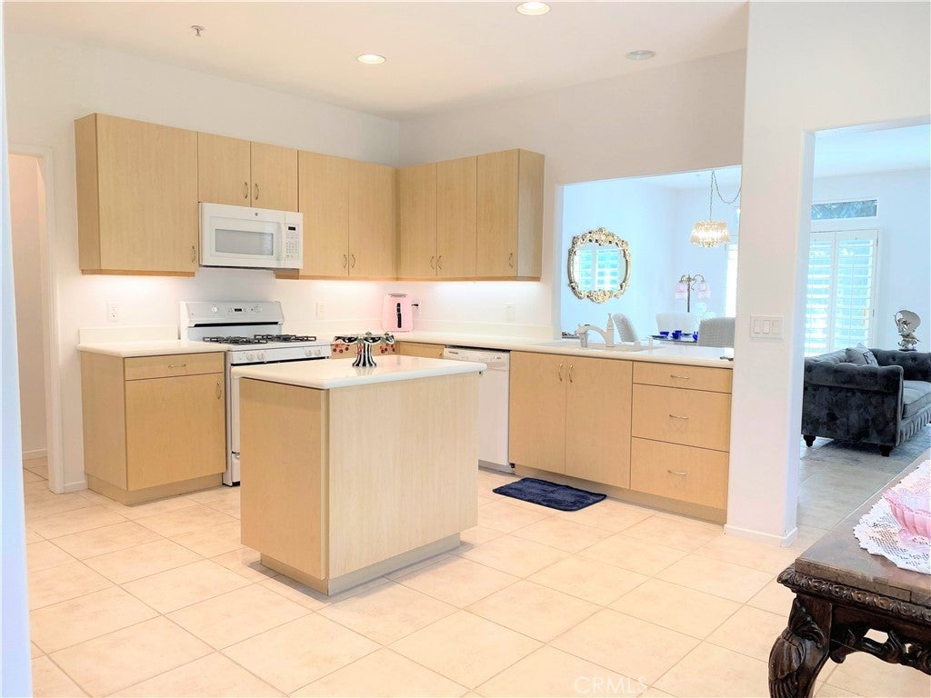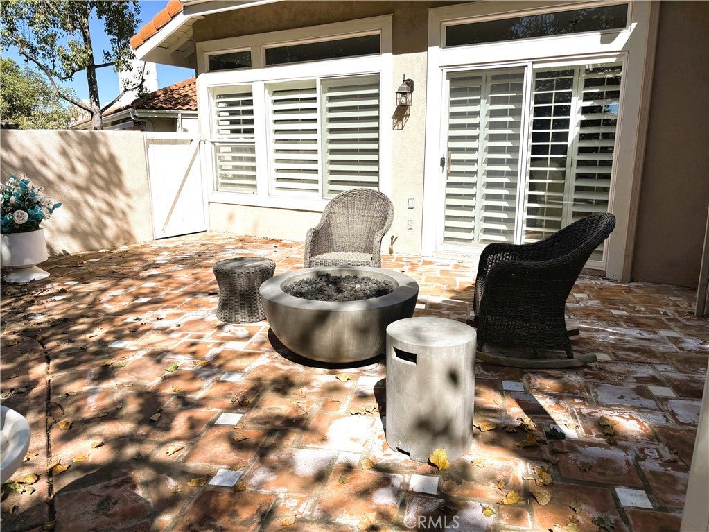 Bring All Offers! Beautiful 3 Bedroom, 2 Bath, Single-level End Unit home with a much sought after Full-sized, 2-car Driveway located in the very desirable 55+ Guard Gated community of Palmia in Mission Viejo. A wall in the third bedroom was removed, opening it to the spacious Kitchen. The door to the room from the hallway, as well as the closet, remains in place. The room could easily be converted back to a private bedroom or continue to be used as a TV room or dining area. This home features plenty of natural light with shutters and blinds throughout. The expansive Eat-in Kitchen features a gas range & convenient Island. The Primary Bedroom includes a ceiling fan and access to the large outdoor space via a sliding glass door. The Primary Bath features dual sinks and a walk-in shower with no step. Other features include a fireplace in Living Room, high ceilings, hard surface/tile flooring and recessed lighting throughout. The separate inside laundry room includes plenty of cabinets and a utility sink. The 2-car garage can be accessed directly from inside the home. The home has been re-piped and has no Mello-Roos. The Association clubhouse and amenities includes 2 pools, spa, putting course, tennis, activities, cable service and more.