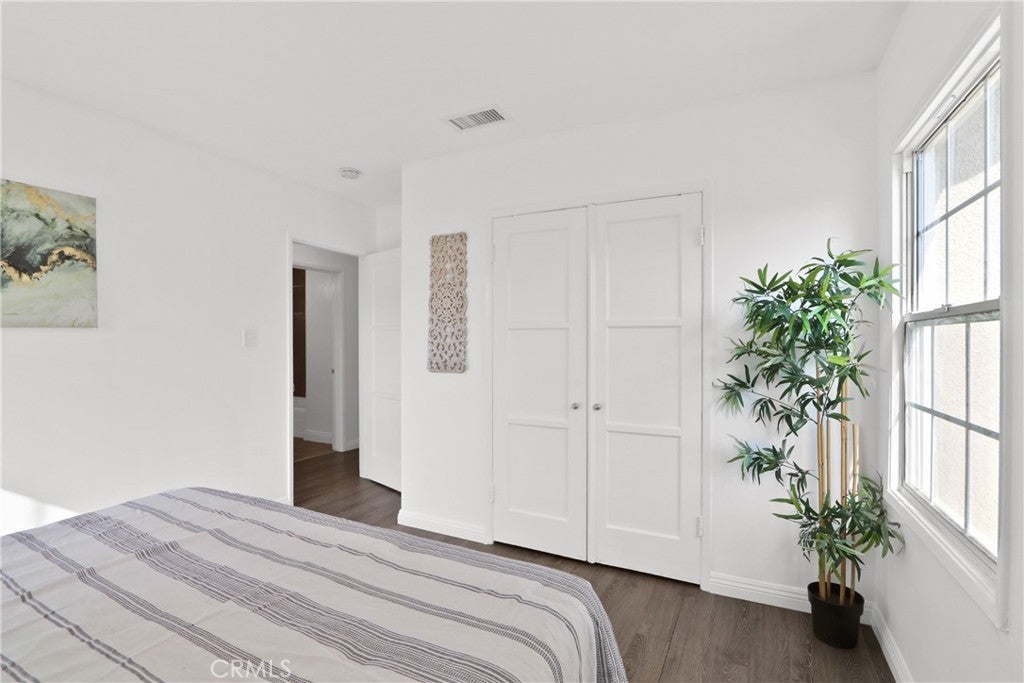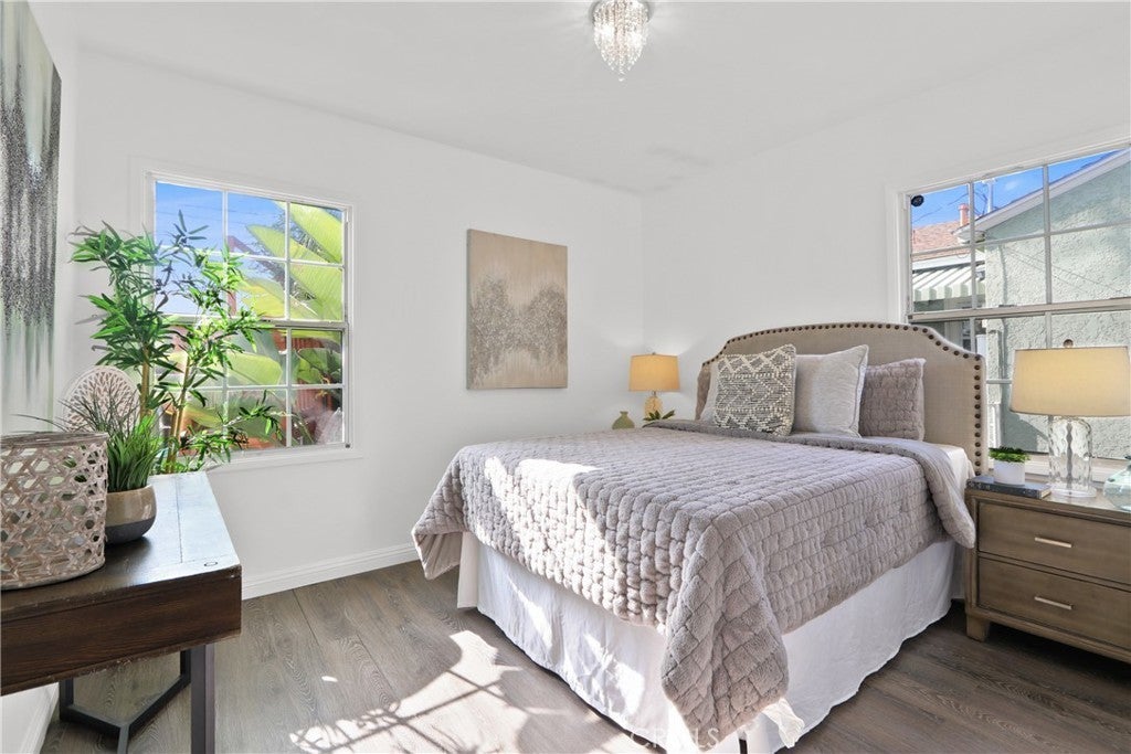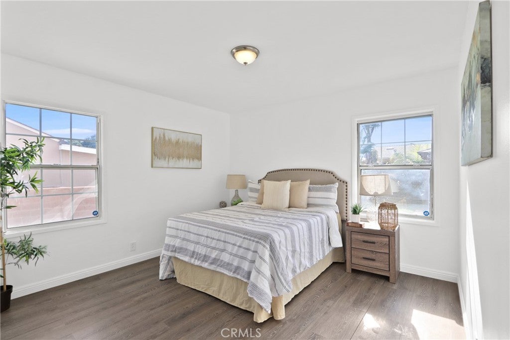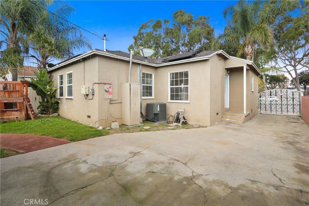 Welcome home to this inviting single-story Lakewood residence, a move-in ready haven that perfectly balances comfort, flexibility, and character. This thoughtfully updated home offers 3 bedrooms and 1.5 bathrooms across an open and functional floor plan, designed for modern living. Step inside and discover a light-filled space that feels crisp and refreshed, thanks to new paint and abundant natural light complemented by recessed lighting. Warm vinyl plank flooring flows throughout the home, creating a cohesive and inviting atmosphere that is both restful and homely from morning to night. The heart of the home is the kitchen, a fresh and functional space equipped with clean cabinetry, modern countertops, and stainless-steel appliances. An adjoining dining area provides an ideal spot for casual family meals or entertaining guests. The home features three good-sized bedrooms, with the primary bedroom located towards the back for added privacy. All bedrooms share an updated full bathroom with a convenient shower/tub combination. Outside, the spacious backyard awaits, complete with a covered patio perfect for entertaining or relaxing on California evenings. The property also boasts desirable amenities such as indoor laundry, central A/C, and eco-friendly solar panels. Situated on a quiet frontage street, this home is centrally located near schools, parks, extensive shopping options, a movie theater, and freeway access, offering unparalleled convenience. A long driveway and a detached garage provide ample parking and storage, adding to the endless potential of this wonderful neighborhood setting.