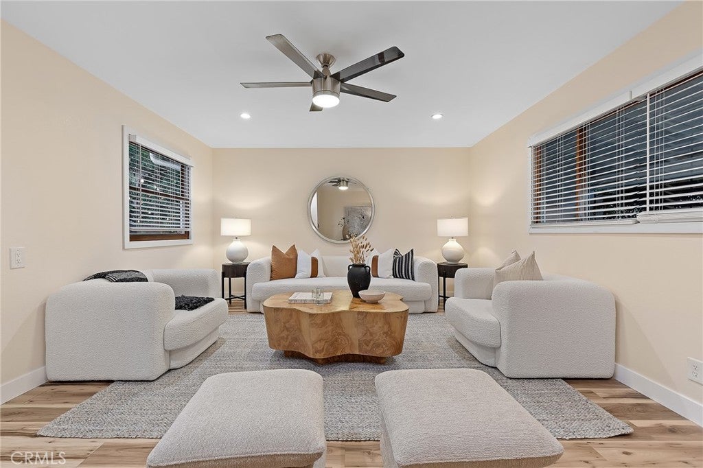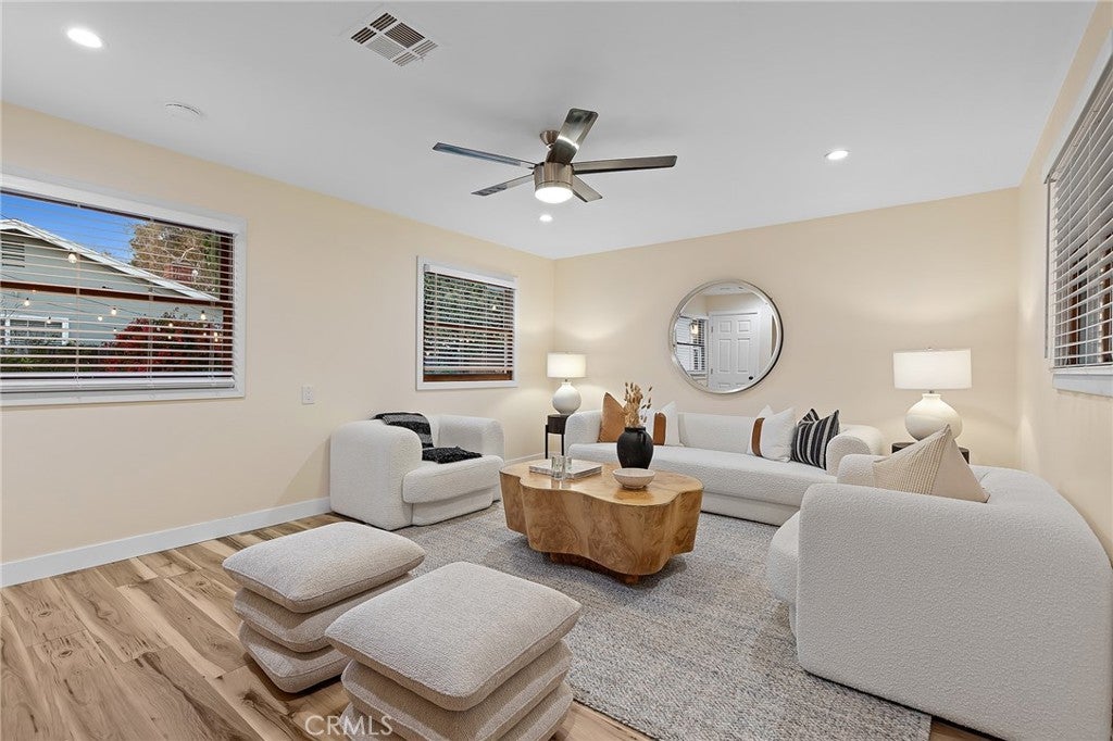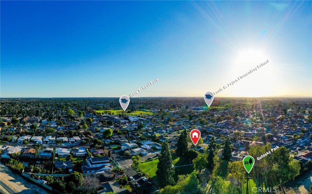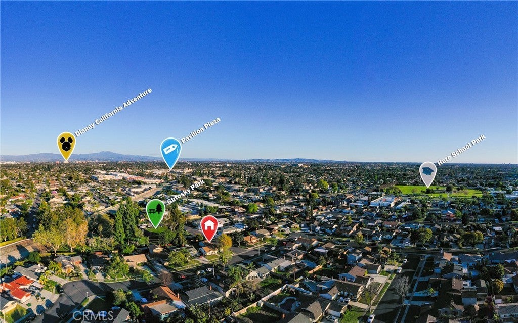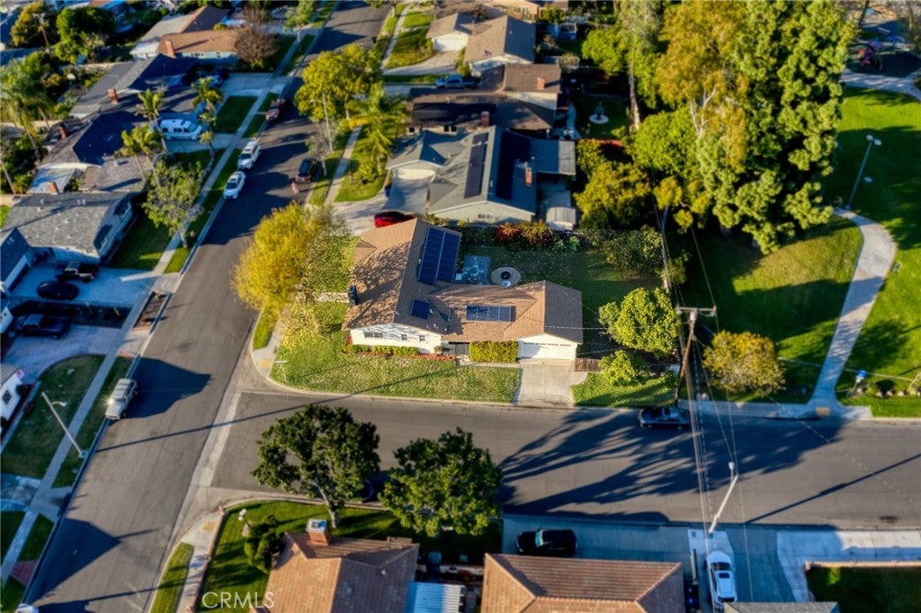 Set on a RARE 7,800 sqft CORNER LOT in Garden Grove City, this beautifully remodeled 3-bedroom, 2.5-bath home offers the space, upgrades, and future potential buyers are searching for, plus PAID-OFF SOLAR for immediate energy savings. With room to expand and potential for an ADU, this property stands out as a smart long-term investment in a convenient, park-adjacent setting. Step inside to a bright, modern open-concept layout anchored by a spacious family room with a cozy fireplace, flowing into the dining area and a stunning new kitchen. The kitchen has been fully upgraded with soft-close cabinetry, quartz countertops, a designer backsplash, hood vent, and a large island featuring pull-out drawers and a built-in spice rack. Enjoy quality appliances including a KitchenAid dishwasher, stainless steel stove, Kohler pull-down faucet, and a deep 32" sink with disposal. Just off the back of the kitchen is a bonus oversized room - ideal as a 4th bedroom, second family room, playroom, or a truly spacious home office - adding flexible living space rarely found at this size. The 2025 renovation continues throughout: new interior paint, vinyl flooring, new baseboards, and all-new interior doors. Both bathrooms have been completely refreshed with Kohler soft-close sliding glass doors, new tilework, vanities, and toilets; the primary bath also features a new tub. All bedrooms include new sliding closet doors. Everyday comfort features include central A/C & heating, dual-pane vinyl windows, shutters, recessed lighting, and ceiling fans, plus a NEW water heater. The attached 2-car garage connects via a covered breezeway to the back entrance. Relax in the backyard with mature orange and tangerine trees, and enjoy the unique benefit of backing directly to Gutosky Park with playground and picnic areas. Minutes to Magnolia Park, ABC Supermarket, Sprouts, Walmart, dining, and shopping. Must see!