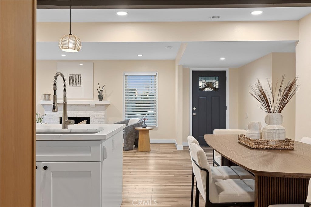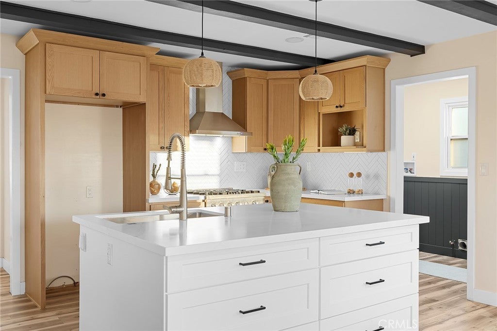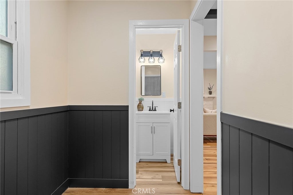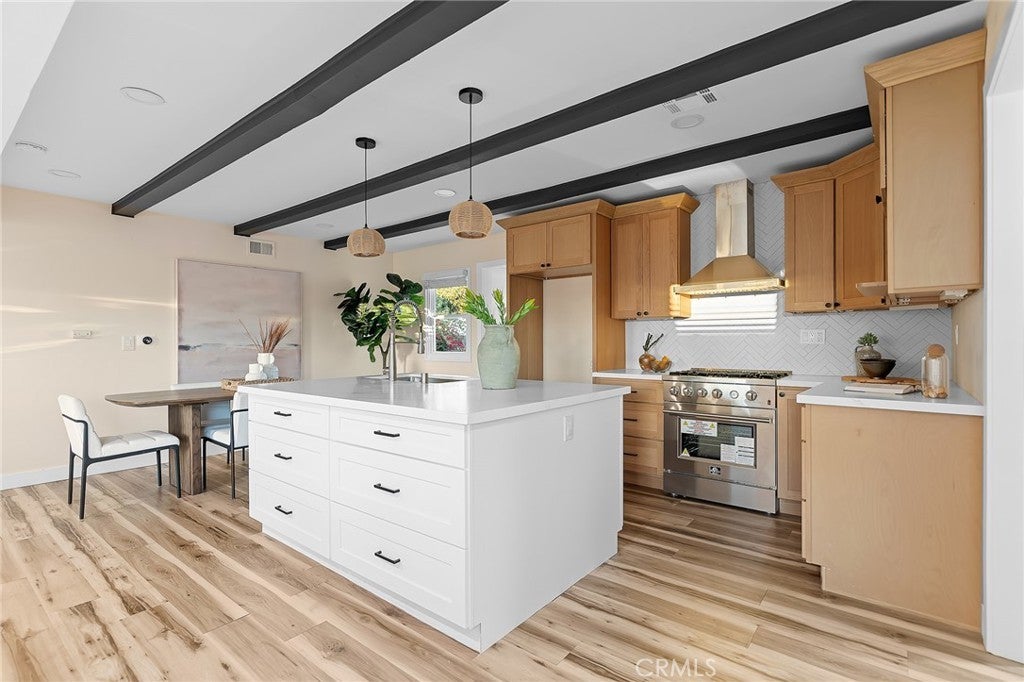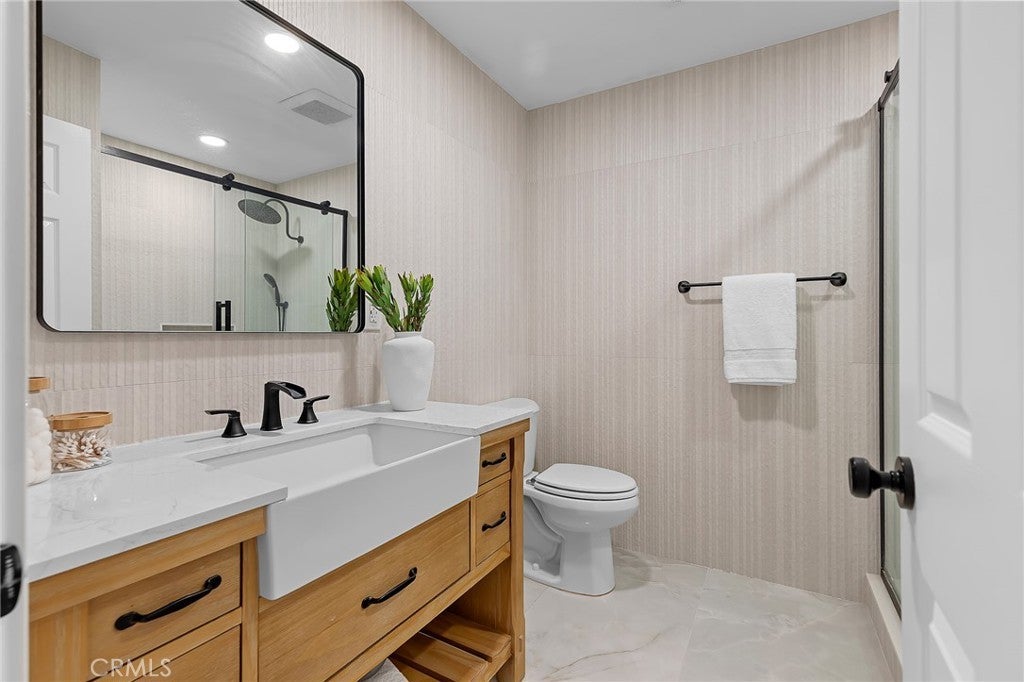 Set on a RARE 7,800 sqft CORNER LOT in Garden Grove City, this beautifully remodeled 3-bedroom, 2.5-bath home offers the space, upgrades, and future potential buyers are searching for, plus PAID-OFF SOLAR for immediate energy savings. With room to expand and potential for an ADU, this property stands out as a smart long-term investment in a convenient, park-adjacent setting. Step inside to a bright, modern open-concept layout anchored by a spacious family room with a cozy fireplace, flowing into the dining area and a stunning new kitchen. The kitchen has been fully upgraded with soft-close cabinetry, quartz countertops, a designer backsplash, hood vent, and a large island featuring pull-out drawers and a built-in spice rack. Enjoy quality appliances including a KitchenAid dishwasher, stainless steel stove, Kohler pull-down faucet, and a deep 32" sink with disposal. Just off the back of the kitchen is a bonus oversized room - ideal as a 4th bedroom, second family room, playroom, or a truly spacious home office - adding flexible living space rarely found at this size. The 2025 renovation continues throughout: new interior paint, vinyl flooring, new baseboards, and all-new interior doors. Both bathrooms have been completely refreshed with Kohler soft-close sliding glass doors, new tilework, vanities, and toilets; the primary bath also features a new tub. All bedrooms include new sliding closet doors. Everyday comfort features include central A/C & heating, dual-pane vinyl windows, shutters, recessed lighting, and ceiling fans, plus a NEW water heater. The attached 2-car garage connects via a covered breezeway to the back entrance. Relax in the backyard with mature orange and tangerine trees, and enjoy the unique benefit of backing directly to Gutosky Park with playground and picnic areas. Minutes to Magnolia Park, ABC Supermarket, Sprouts, Walmart, dining, and shopping. Must see!