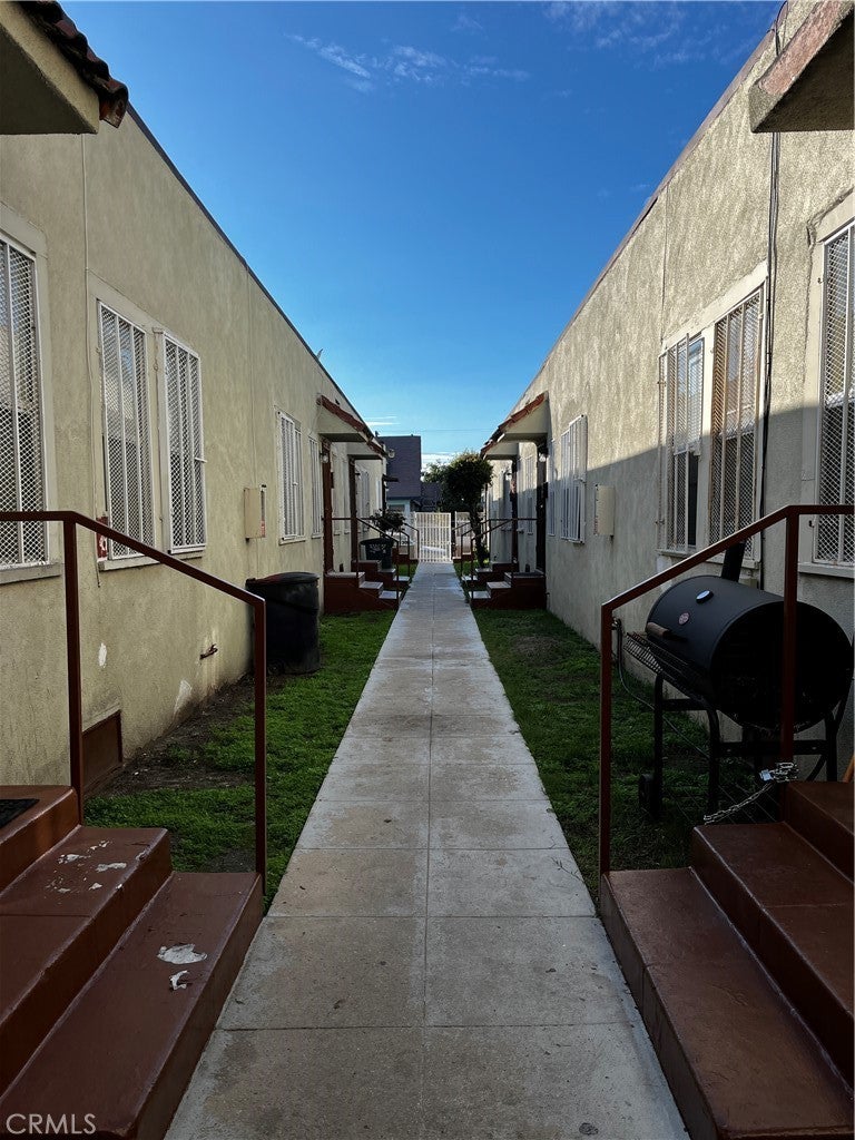 FOR RENT! Remodeled and Unfurnished Apartment in Secured Gated Complex. Single Story End Unit means no one above or below you! Livingroom Entry! Bright and Sunny Kitchen with Tile Floors, Stainless Steel Sink, Stove and Refrigerator Included! Spacious One Bedroom with Raised Panel Doors, New Carpet, Ceiling Fan, Water Heater and Huge Walk-in Closet! Solid Core Front Door with Security Screen Door and Security Windows. Tiled Bath with Safety Grab Bars in Shower over Tub! Section 8 Welcome! Water & Trash included. Tenant pays gas and electric. Street parking. Laundry facilities to be installed in June 2026! Don't miss this opportunity to live in a secure and modern apartment within Walking distance to Normandie Ave. School, library, parks, shopping, and transportation! ONE YEAR LEASE WITH ONE MONTH FREE RENT AT END OF LEASE!!!!!!