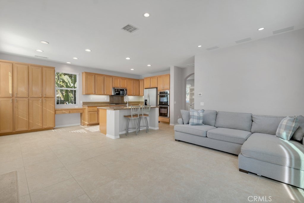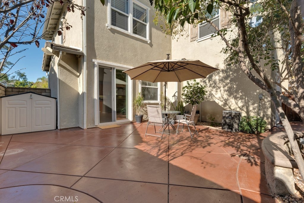 Nestled in one of Camarillo’s most desirable neighborhoods, Village at the Park, this home offers the meticulously maintained interior you’ve been waiting for along with the outdoor lifestyle that makes this community so special. Upon entering, you’ll notice travertine-style tile flooring throughout the downstairs. The living room is filled with natural light and flows seamlessly into the open-concept kitchen and family room, creating an inviting space for both everyday living and entertaining. The kitchen features abundant cabinet and granite counter space, rich wood cabinetry, and stainless steel appliances including a built-in microwave, double ovens, dishwasher, and six-burner cooktop. A bar-top counter is perfect for casual dining, and the deep single-basin sink adds both style and function. You’ll also find space for a dining table just off the kitchen. The family room offers a cozy setting with a gas fireplace and built-in media shelving, the perfect place to unwind at the end of the day. Upstairs, the generous primary suite provides a relaxing retreat with an ensuite bathroom featuring updated glass shower doors, a jetted soaking tub, dual sinks, a dedicated seated makeup vanity, a private water closet, and a spacious walk-in closet. Two secondary bedrooms offer plenty of natural light and ample closet space, while the additional full bathroom includes dual sinks and a tub/shower combination. The upstairs laundry room adds everyday convenience and includes a utility sink. Enjoy Camarillo’s beautiful weather outdoors on the paved patio, ideal for al fresco dining or relaxing evenings. Additional features include central heating and air conditioning, interior shutters throughout much of the home, updated bathroom mirrors, carpet in the bedrooms, a storage shed, and a two-car garage with direct access. Located on an interior street, the home is just down the street from a neighborhood park with playground and green space, and a short walk to the community center featuring a resort-style pool, wading pool, clubhouse, fitness center, basketball courts, and walking and biking trails throughout the community. Conveniently located near shopping, dining, highly desirable schools, the YMCA, and commuter routes, this home offers comfort, convenience, and the best of Village at the Park living.