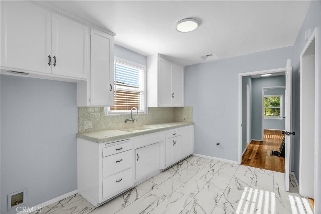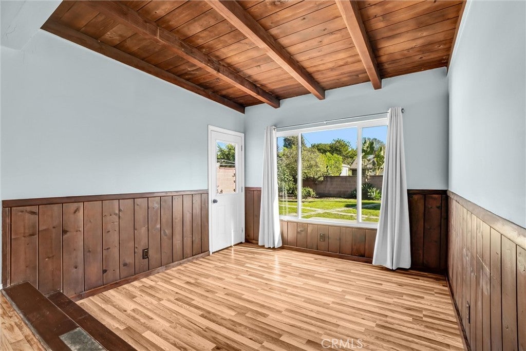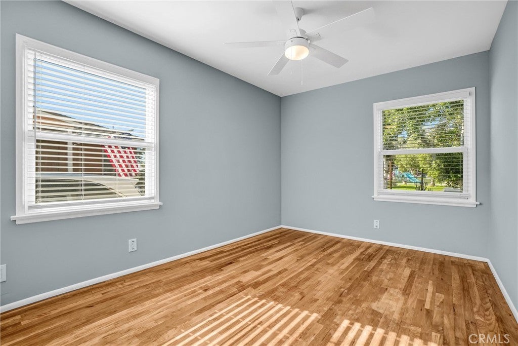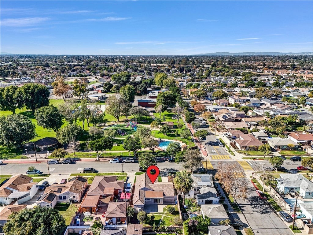 Well-maintained and nicely updated single-story home ideally located directly across from an elementary school and neighborhood park, offering open views and a strong sense of neighborhood pride. The exterior features updated windows, rain gutters, an updated front entry door and garage door, and an attached one-car garage. The backyard offers a clean concrete patio, generous usable space, and mature trees providing shade and privacy. Inside features original hardwood floors in excellent condition, freshly painted smooth walls, updated light fixtures, and a functional layout with good natural light. A step-down bonus/den with exposed beams offers flexible additional living space. The kitchen is clean and functional with white cabinetry, tile countertops and backsplash, newer tile flooring, gas connection, and adjacent laundry area. Both restrooms are updated, clean, and move-in ready. Additional improvements include updated plumbing and electrical systems. Located in a well-kept neighborhood with continued reinvestment, this home offers an excellent combination of condition, location, and functionality.