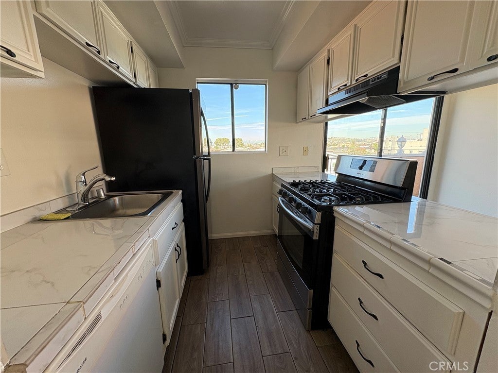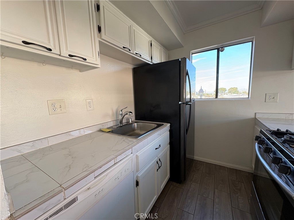 Welcome to this top-floor, corner 2-bedroom, 2-bath condominium offering privacy, natural light, and desirable neighborhood views. Freshly updated with new interior paint and brand-new refrigerator and dishwasher, this residence is move-in ready and thoughtfully designed for comfortable living. The open living area is bright and airy, enhanced by the corner location and two private balconies (wrap around), perfect for enjoying morning coffee or evening breezes. The kitchen and both bedrooms enjoy pleasant neighborhood views, creating a light and welcoming atmosphere throughout the home. Both bedrooms are well-proportioned, including a primary suite with its own bath, while the second bedroom offers flexibility for guests, a home office, or additional living space. Two assigned parking spaces provide convenience and added value. Situated in the front of the community with controlled access, this top-floor unit offers the benefits of no neighbors above, excellent airflow, and a quiet setting. Conveniently located near downtown Long Beach, shopping, dining, and major transportation routes, this is an outstanding opportunity for both owner-occupants and investors alike.