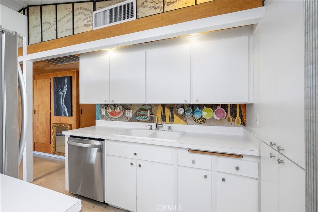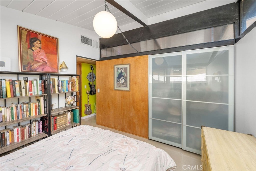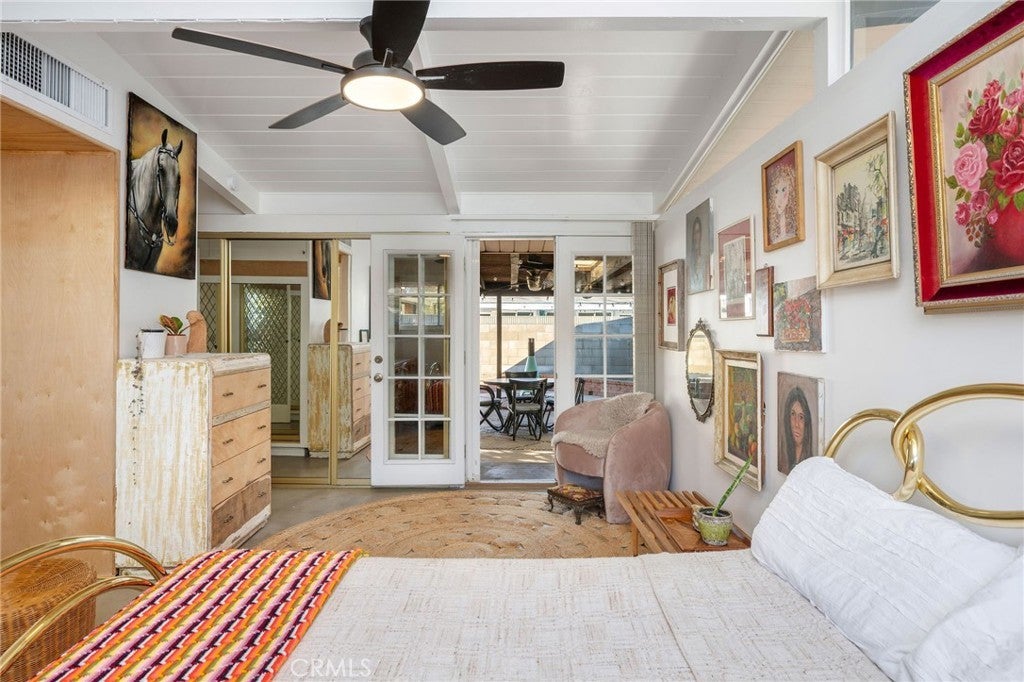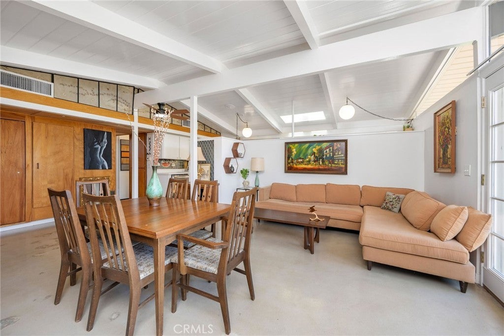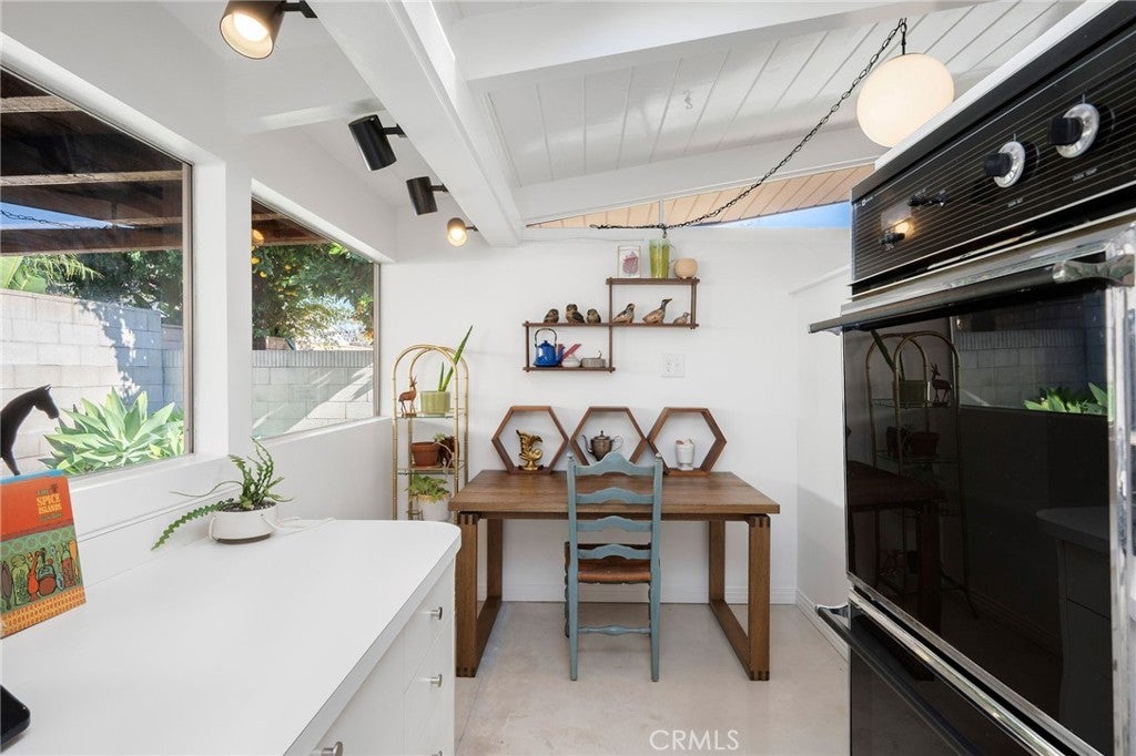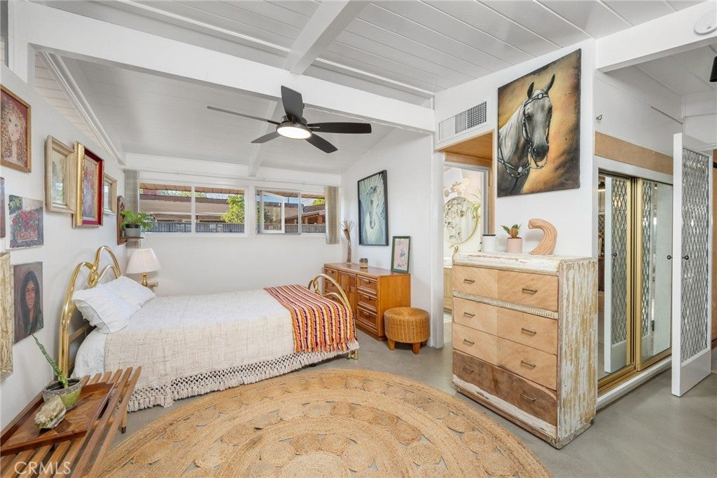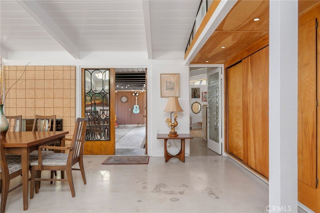 Welcome to 7147 Metz, a custom tailored Cliff May Rancho with subtle nods to mid-century tradition, blended effortlessly with personal touches throughout the decades. Making your way down the ideal tree lined street, turning into the 3 car driveway, it would be easy to think that past the mature kept landscaping, the detached two car garage and just inside the privacy gate lies just another Rancho... Once you make it into the private courtyard, the intrigue only builds. The details start to pop, the custom mid-century front doors and original Cliff May Corner give subtle hints as to what's ahead. Making your way inside, you're led in by polished concrete flooring and personally tailored touches that have been preserved since owners prior. The rare, pearlescent floor to ceiling blinds, the perfect use of the original pony wall, the perfectly preserved birch and of course, the trademark celestial natural light from above. Heading toward the kitchen, You'll notice the first of two skylights shining into the kitchen with added and much needed bumped out space, handmade tile mosaics which have been meticulously preserved from a previous owner as well as hanging lights to tie it all together. Heading to the guest bedrooms, the first hall bathroom maintains the original blue tub, in pristine condition, with tile and finishes to match the motif. The original Jack & Jill bedrooms have been rebuilt by hand with custom partitions between them. As you head toward the primary ensuite, the original closets have been restored inside with birch trim to match... Another custom handmade detail... Once you enter the primary, you'll notice the orientation gives way to ample natural light, paired perfectly with the primary bathrooms skylight, original pink tub and luxury amenities. After you've had a chance to take in the details inside, you may wonder, what else is there to know? For starters, the new 50 year roof put on in 2023 will help put your mind at ease, along with new interior and exterior paint throughout. A whole house water filtration is always a nice touch and to make things more convenient, the garage (also with 2 additional skylights) has its own hot water heater for laundry. With ideal outdoor spaces for entertaining and privacy alike, parking and storage, this is one of the coolest and complete Cliff May Ranchos you may see this year.