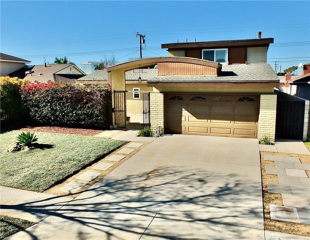 Charming two-story home in Huntington Beach offering 4 bedrooms, 2 full bathrooms, an open floor plan, and is located on a generous sized lot. Large private courtyard in front is great for entertaining. Living room hosts a fireplace, high ceilings, lots of natural light, and opens to a patio and backyard with fruit trees, and lots of gardening potential with several large planter boxes. Dining area is off the kitchen and is open to the main living area. Primary ensuite has a slider to the front courtyard. Upstairs you will find a generous sized family room that can be used as a 5th bedroom, complete with closet. Located in a desirable neighborhood off Beach Boulevard and Warner, this move-in-ready residence blends comfortable living space with outdoor potential and convenient access to shopping, dining, and schools.