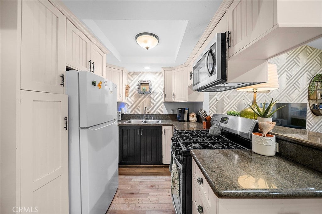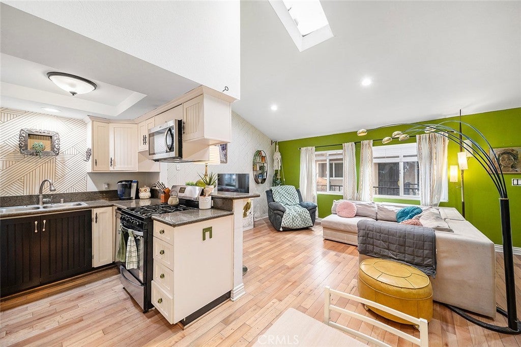New Price! Seller offering a credit of 12 months worth of HOA Dues! This is a small private complex with secure gated entry and gated parking garage. Ideal for first-time buyers or investors, this home comes equipped with a refrigerator, dishwasher, gas range, microhood, and an in-unit COMBO washer/dryer for ultimate convenience. Enjoy the open feeling of vaulted ceilings and abundant natural light from the skylight in the living room, complemented by elegant hardwood floors in both the living area and kitchen. Both bedrooms feature new carpeting, and both bathrooms both have tiled shower walls. The primary bedroom also has vaulted ceilings and a dedicated AC Split for ultimate comfort as well as access to the attic, which has been sheeted with plywood for storage or separated space with a dedicated pull down staircase. This condo is ready for you to personalize and make it your own. Step outside to a dedicated gated front patio—perfect for soaking up the Long Beach sunshine or dining alfresco. Additional highlights include two dedicated parking spaces in a secure garage, each with extra overhead storage, plus access to a community laundry facility in addition to your private in unit laundry area. The building offers controlled access for added peace of mind. Don’t miss this opportunity to own a wonderful home in a location that allows easy access to dining, and a short distance from the beach and the freeway!