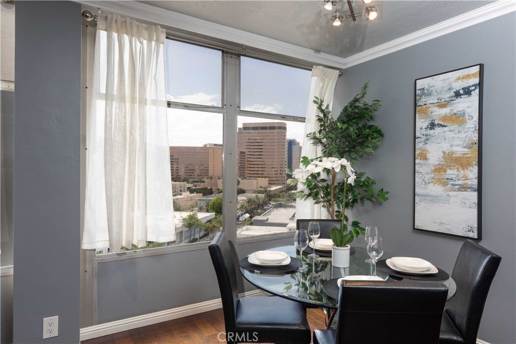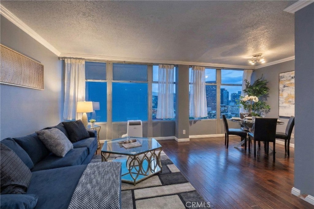 Seller is offering a fantastic incentive to pay 12 months of parking at an adjacent lot! The Royal Palms is an iconic building in the heart of Downtown Long Beach, and this stylish 1-bedroom, 1-bathroom condo offers 600 sq. ft. of modern living with sweeping Cityscape and skyline views that dazzle both day and night. The bright, open living and dining areas feature wall-to-wall windows and laminate flooring throughout, while the updated kitchen showcases stone countertops, glass tile backsplash, and included appliances. This all-electric unit (no gas) provides comfortable and efficient living, complemented by the convenience of a secure building with professional management, staffed lobby office, 24-hour camera surveillance, swimming pool, and onsite community laundry. The monthly HOA covers water, trash, sewer, and more, making this a worry-free lifestyle. Enjoy being just steps away from a grocery store, top-rated restaurants, coffee shops, bakeries, and breweries, plus only minutes from the beach, The Pike, Shoreline Village, the Aquarium of the Pacific, the Queen Mary, and the Convention Center. Whether as your full-time residence or an investment, this condo combines midcentury charm, modern amenities, and an unbeatable location. Parking options in the area include monthly permit parking at an average rate of $120/month at the Travelodge next door to the building, subject to permit availability. This home is located in a census track that may qualify for a down payment assistance grant; parking incentive subject to parking availability - inquire today!