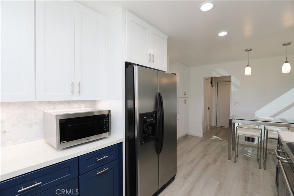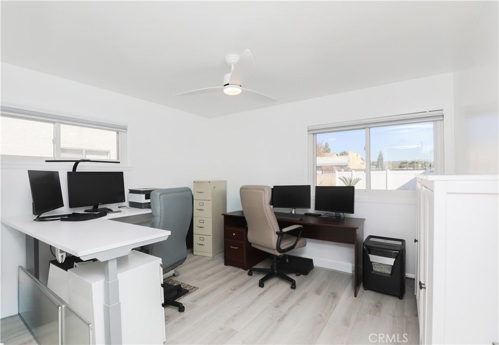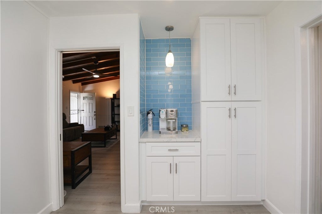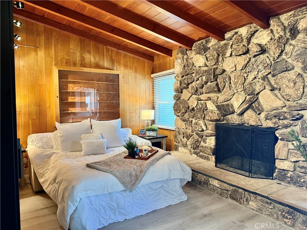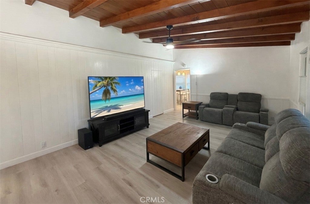 Welcome to a meticulously maintained, thoughtfully upgraded home offering timeless character, modern comfort, and true pride of ownership. Situated on a generous lot, this turnkey residence reflects years of documented improvements and is truly move-in ready. The front of the home creates an inviting first impression with mature palm trees, manicured hedges, a charming white picket fence, and a welcoming front patio with recently refinished flooring. Inside, the bright living room showcases updated wood-like flooring, vaulted wood-beam ceilings that add warmth and architectural charm, and recessed lighting throughout. The primary bedroom is a private retreat featuring a striking stone fireplace, its own exterior entrance, and a discreet secondary “secret” door hidden off the main living area, offering rare flexibility and privacy. The remodeled kitchen is designed for both function and style with quartz countertops, stainless steel appliances, an oversized single-basin stainless steel sink, custom cabinetry with under-cabinet lighting, a tile backsplash, a built-in beverage station surrounded by custom cabinetry, and a quaint dining area enhanced with pendant lighting. The main bathroom has been tastefully updated with modern vanities, undermount sinks, a back-lit digital mirror, satin nickel fixtures, newer window treatments, and dual-pane windows that enhance comfort and energy efficiency throughout the home, while a second water closet is conveniently located in the laundry room and includes a large utility sink. Major system upgrades include a newer roof, upgraded electrical panel, new gas line from the meter to the home, central heating and air, rain gutters, cleanouts, and extensive electrical improvements, along with interior and exterior paint, upgraded interior doors, and updated flooring. The backyard offers a private retreat with vinyl fencing, new driveway and side gates, fresh landscaping, and a spacious covered patio with lighting and electrical, ideal for entertaining or relaxing year-round, and additional highlights include a detached garage with an attached covered storage shed and a long driveway. With an extensive list of improvements including windows, roofing, electrical, HVAC, kitchen and bath remodels, flooring, landscaping, fencing, and more, this home offers long-term value and peace of mind and is conveniently located near schools, shopping, dining, and major freeways in the desirable city of Whittier.