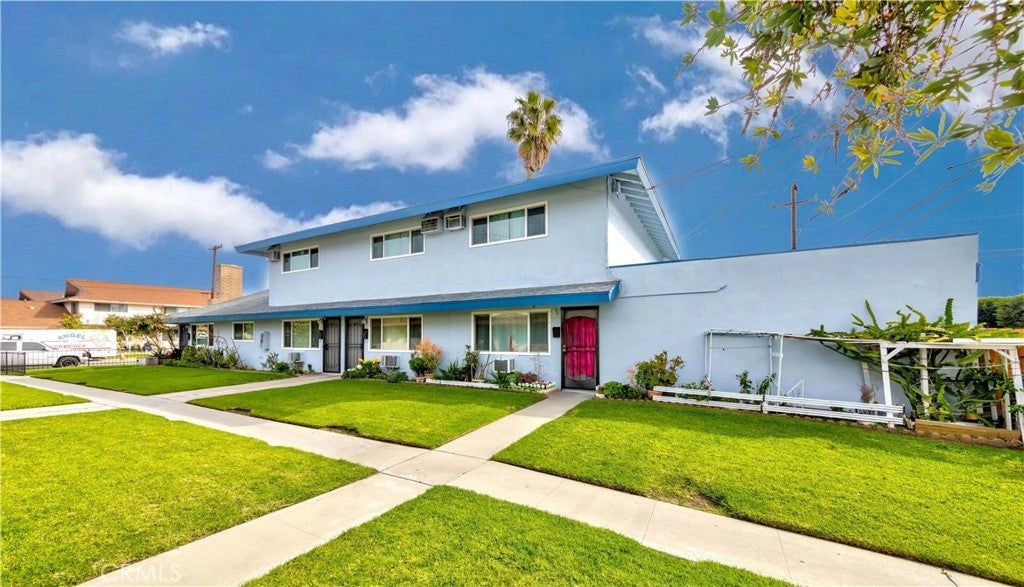 Great Investment Opportunity! This corner lot 4 unit property is located in the highly sought-after city of Garden Grove, offering a rare chance to own a one of a kind income producing property in a prime location. The property boasts amazing curb appeal and features an attached 4 car garage with additional space to build extra outdoor parking, already approved by the city. The property consists of a mix of unit types. One of the units is a single level 2 bedroom, 2 bath with its own private patio. Inside, you'll find a spacious open floor plan, including a cozy living room with a fireplace. The kitchen is nicely sized with quartz countertops, a breakfast counter, and a dining area that opens to the yard. One of the bedrooms has an attached bath, while the secondary bedroom is conveniently located near a full hallway bath. The other three units are two story and each offers 2 bedrooms and 1.5 baths, along with a private patio. The main level of each features an open floor plan with a spacious living room that leads to the private patio, a breakfast nook, and a kitchen with quartz countertops and a half bath. Upstairs, there are two generously sized bedrooms with ample closet space, and a fully remodeled hallway bath. At the rear of the property, you'll find four garage spaces, one for each unit, along with a community laundry room that provides an opportunity for extra income. This property presents a true gem and exceptional investment opportunity - live in one unit and rent out the others for maximum rental income. With current rents below market value, there's significant upside potential. Additional bonus features include fully renovated units with new kitchen countertops, fresh laminate flooring in most areas, and updated plumbing. The property also offers new exterior paint, a new roof in most areas, dual pane windows and sliding doors, a new wood fence, and a new water heater. Centrally located near shopping, parks, grocery stores, dining, entertainment, schools, and with easy access to the 22/5/57 freeways, this property is ideally situated. Don’t miss out on this once in a lifetime opportunity, this property won’t last long!