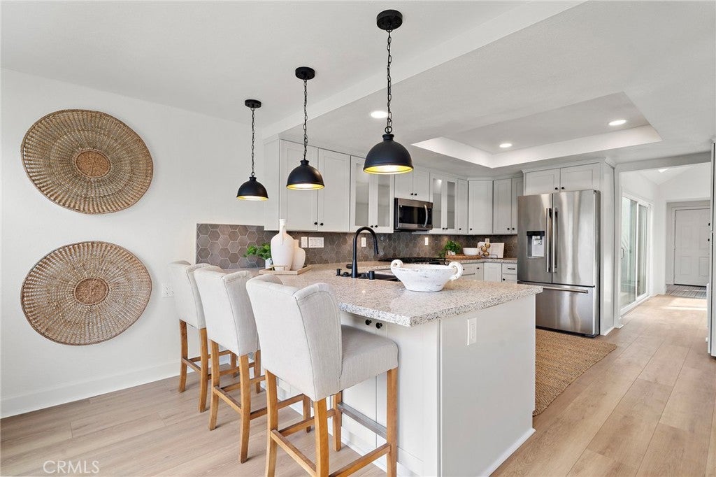 Discover an exceptional opportunity to own a completely REMODELED 4-bedroom, 3-bath residence in one of Laguna Niguel’s most coveted neighborhoods—where coastal elegance meets everyday convenience. Encompassing approximately 2,576 square feet of thoughtfully designed living space, this open floor plan captures sweeping mountain vistas and enchanting city-light views that transform every sunrise and sunset into a private spectacle. Sun-filled interiors, soaring ceilings, and brand new paint and flooring create an atmosphere of understated luxury, while the flexible floor plan offers a main-level bedroom ideal for guests, a private office, or multi-generational living. In addition, there is brand new epoxy flooring in the garage and an inside beautiful large mud room. Upstairs, the expansive primary suite provides a redesigned serene retreat, with a dual head walk-in shower, complemented by two additional bedrooms connected by a brand new beautifully appointed Jack-and-Jill bath designed for both comfort and privacy. Perfectly positioned just minutes from the world-class shores of Laguna Beach and Dana Point, this home places premier coastal living at your doorstep. Enjoy effortless access to Salt Creek Beach, award-winning schools, lush neighborhood parks, and the Laguna Niguel Recreation Center—featuring an Olympic-size pool, botanical gardens, summer concerts, and a vibrant splash park. This is more than a home—it’s an invitation to curate a lifestyle of sophistication, convenience, and timeless California beauty in one of South Orange County’s most desirable communities. Also seller is willing to give $5K CREDIT towards buyers closing costs! Win-Win situation!
