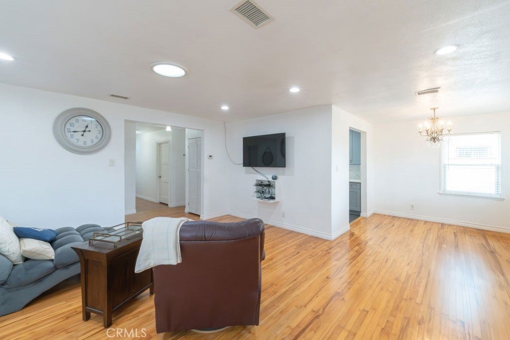 Welcome to this well-maintained and thoughtfully upgraded single-family home offering 1,526 square feet of comfortable living space in a desirable Uptown Long Beach neighborhood. As you enter, you’re greeted by hardwood flooring in the living room and dining area, creating a warm and inviting atmosphere, while laminate flooring throughout the bedrooms adds durability and style. The home features a spacious primary bedroom with a walk-in closet and a private en-suite restroom, providing a true retreat. The kitchen was remodeled, offering a modern and functional layout ideal for everyday living and entertaining. Additional upgrades include dual-pane windows installed within the last three years, recessed lighting, copper plumbing, a 200-amp electrical panel, central air and heating, a tankless water heater, and a water softener system. The roof is approximately 10 years old, adding peace of mind for the next owner. For added security and convenience, security cameras are included with the sale. The backyard is a standout feature, showcasing a variety of mature fruit trees, including nectarines, avocados, Limes, pomegranates, sweet limes, and guavas, perfect for enjoying fresh fruit right at home. The property is conveniently located near shopping centers, grocery stores, and everyday essentials, with easy access to popular retailers such as Target, Home Depot, Stater Bros., and nearby shopping hubs. The area is also close to local schools, including elementary, middle, and high schools, as well as parks and major freeways, making commuting throughout Long Beach and surrounding cities a breeze. This home offers a great blend of modern upgrades, space, and location—ideal for buyers looking for comfort and long-term value.