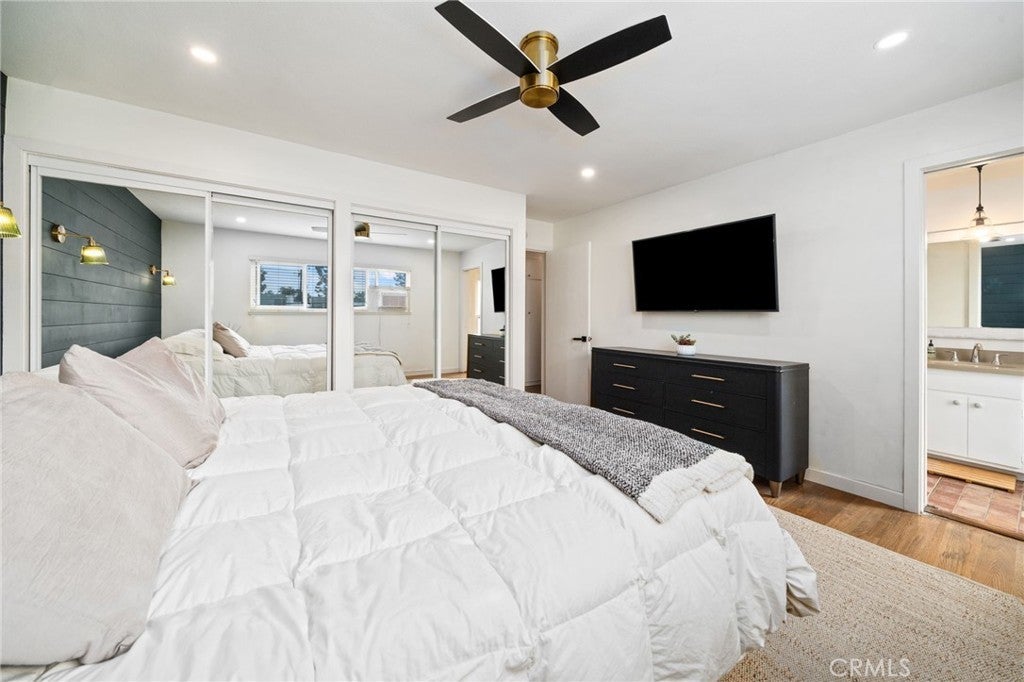 Welcome to this beautifully renovated 2-bedroom, 2-bath home in the desirable community of Sovereign Park Estates. With 1,241 square feet of thoughtfully designed living space, this residence blends relaxed coastal vibes with smart, stylish upgrades throughout. The over-sized living room can potentially be converted into a 3rd bedroom, office, or den. The primary suite offers a quiet retreat, featuring an oversized closet, newer floors, and an updated en-suite bathroom with a walk-in shower. A fully upgraded hallway bathroom adds both function and flair, ideal for daily living and hosting. Throughout the unit, modern custom wall accents add texture and personality, creating a space that feels curated yet comfortable. Original hardwood floors have been beautifully restored, creating a warm, natural feel throughout. The kitchen combines style and utility, with matching appliances, designer lighting, and subtle Spanish-inspired touches, perfect for cooking and entertaining. Just beyond the main living area, a private balcony overlooks the pool and lush greenery, offering the ideal spot to relax under the California sun. The mature tree in front of the unit provides plenty of privacy while enjoying your balcony. Additional comforts include radiant heat, a newer water heater and electrical panel (both installed in 2022), and not one but two parking spaces, one in a shared garage, and the other assigned. Inside the garage, you have a Tesla wall charger, ready for your EV lifestyle. Living in Sovereign Park Estates means access to five pools, a fitness center, billiard room, a library, a clubhouse, and convenient laundry facilities. The monthly HOA fee includes water, trash, sewer, Frontier high-speed internet, and DirecTV with a sports package. Just three miles from the beach and close to the Colorado Lagoon, Alamitos Bay, and the vibrant Long Beach lifestyle, this home is more than a place to live; it’s a place to thrive.