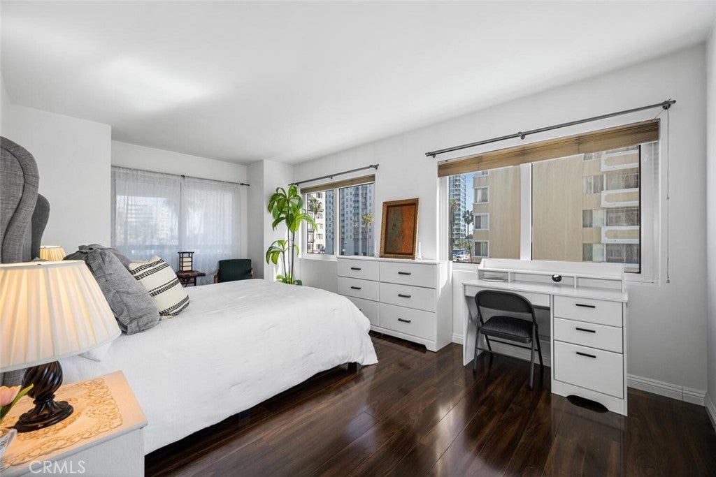 It's not too often that a downtown condo offers the satiating satisfaction of a coastal view and the exciting vibrance of a city view, but here at 525 E. Seaside Way you can enjoy both. With 1,313sqft of living space, one of the largest floor plans offered, this Harbor Place 2 bed, 2 bath end unit condo is uniquely sought after, as these desirable units offer not one, but two balconies with distinctly different views, and are not often available. The convenience of in-unit full size side-by-side laundry, a host of closet space, and a luxury level amenity package that includes, 24hr security, mail room, heated salt water lap pool, jacuzzi, weight-room, men's and women's saunas, grilling station, meeting rooms, 80 (YES, 80!) plus visitor parking spaces, and more. This move-in ready unit has beautifully upgraded flooring throughout, upgraded kitchen, and soaking tub with shower in the guest bathroom. Enjoy the jacuzzi tub with separate walk-in shower and dual vanity in the master suite, in a sophisticated unit complemented by a bright, spacious layout, and two assigned parking spaces. Experience an elevated luxury high-rise lifestyle, in downtown Long Beach. Steps from entertainment, shopping, restaurants, beach paths, and so much more. Not only will you be privy to enviable views that are unmatched by grandstand spectators and tv viewers alike during the annual Long Beach Grand Prix car races, but you'll be near the epicenter of the 2028 Summer Olympic Games in which the city of Long Beach will play host to numerous events. Take this opportunity to establish your place in downtown Long Beach's lively community while you can!