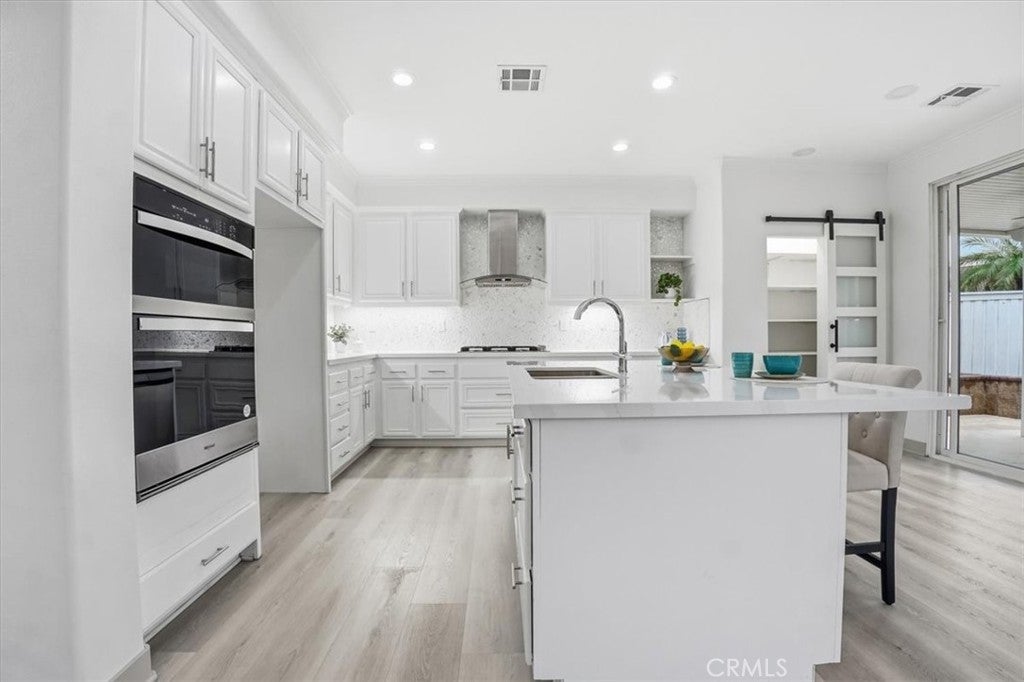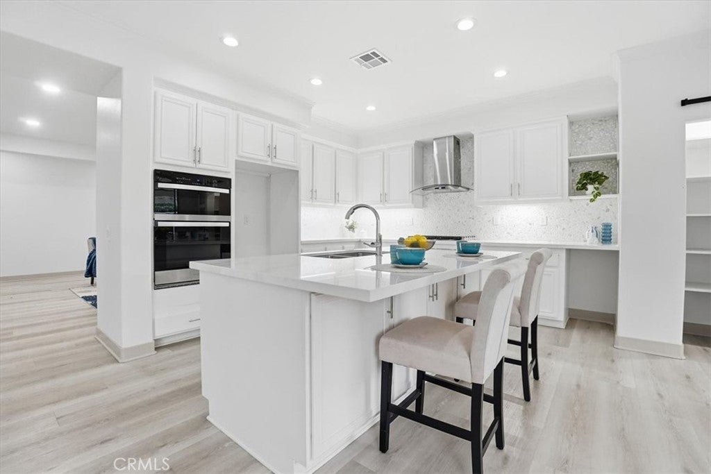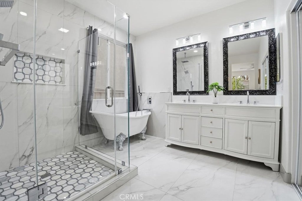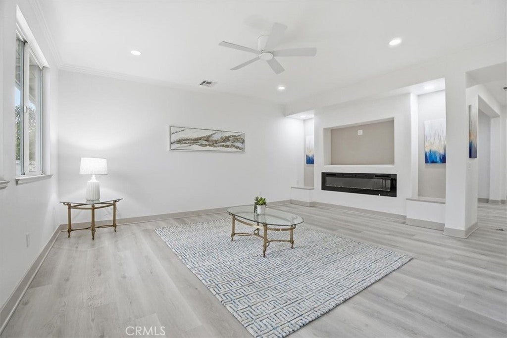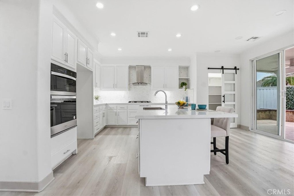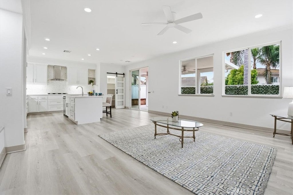 ***ABSOLUTLEY STUNNING!*** COMPLETELY REMODELLED! SHOWS LIKE A PROFESSIONALLY DESIGNED MODEL HOME! MODERN, BRIGHT, OPEN FLOOR PLAN. 4 bedroom, 2 bath. SPA LIKE BATHROOMS with mosaic inlays and RAIN SHOWERS (Dual shower heads). VANITIES WITH QUARTZ COUNTERS, CARRERA MARBLE design porcelain tiles. DESIGNER, HIGH END FINISHES. GOURMET KITCHEN, with a BARN DOOR leading into a WALK IN PANTRY. QUARTZ COUNTERS, LARGE ISLAND, IRIDESCENT MOSAIC PEBBLE BACKSPLASH - has hues that dance in the light! UNDER CABINET LIGHTING. HUGE FAMILY ROOM with LED FIREPLACE with large TV RECESS. 5 BURNER BUILT IN COOKTOP. RECESSED LIGHTS THROUGHOUT. Newly painted in and out including the hardscaping. A tree was removed from the front yard and yard was just reseeded - new grass is already growing and should be substantially visible in about 3 weeks. Family room leads into a covered patio with 2 ceiling fans and very cute patio. Backyard beautifully landscaped with faux green-scape. FRONT YARD lawn has just been reseeded so please enter home only stepping on the pavers. (Green has been AI generated). Close to major shopping and dining venues. Established, well kept, family oriented community. A distinguished, elegantly designed home for a buyer with distinguished taste. A must see! We wish to preserve condition of home for new buyer so: Must remove shoes in front porch, before entering to view the home. Do not touch any light switches - they are TAPED over and are to remain ON. PLS do not park in driveway (was newly coated and needs time to cure). See other comments in Remarks. Thank you kindly :)
